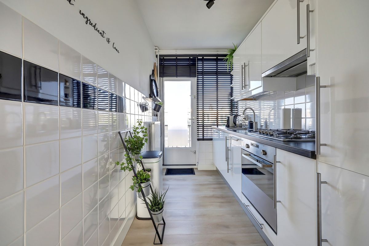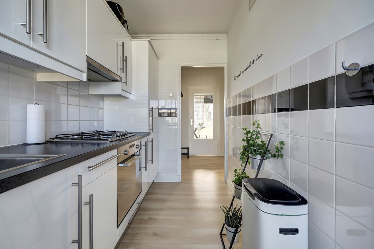 de keuken (6 m², met balkon van 4 m² en nette inbouwkeuken voorzien van een koelkast, vrieskast, gaskookplaat, afzuigkap en vaatwasmachine)