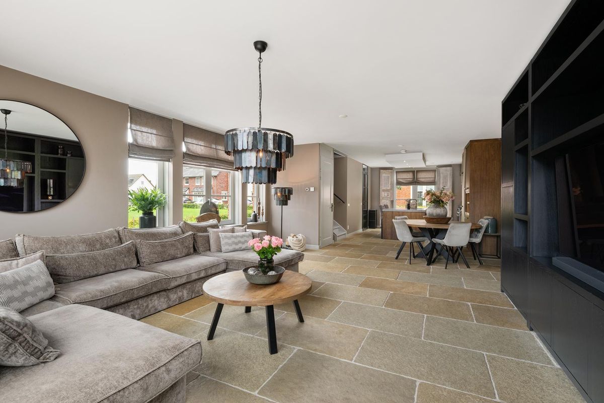De tuingerichte woonkamer heeft een prettige indeling en sluit mooi aan op de moderne open keuken met een groot kook- en spoeleiland. Hier is alle ruimte om samen te koken, te eten en te genieten. Op de verdiepingen bevinden zich vier goed ingedeelde slaapkamers, een luxe badkamer en twee aparte toiletruimten.