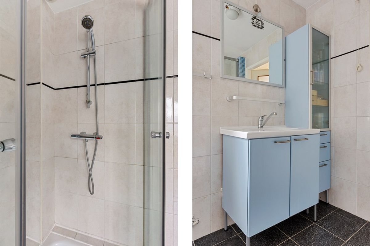De badkamer is compleet uitgevoerd met een douche, ligbad, wastafel en toilet.