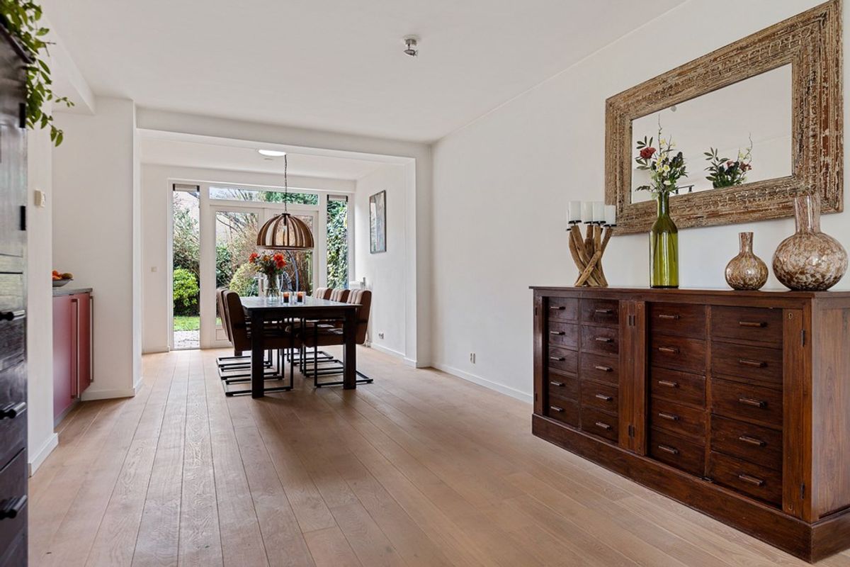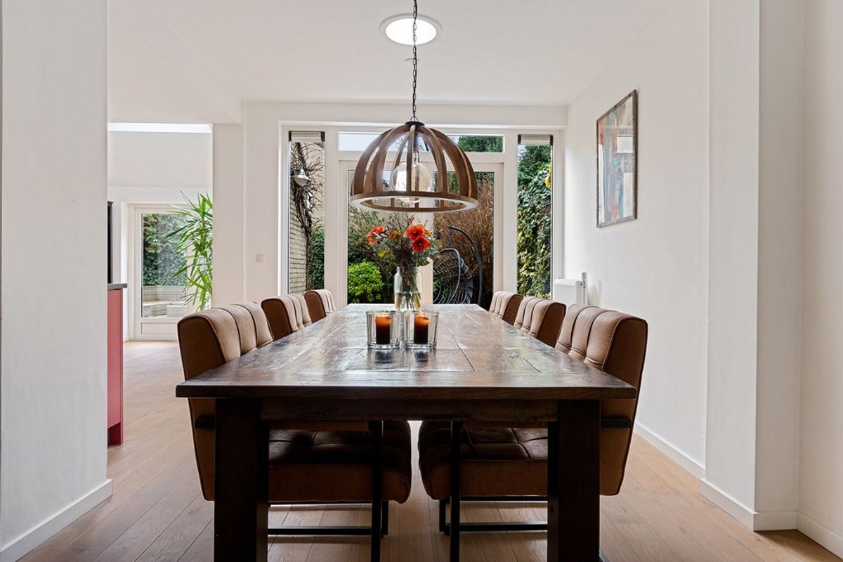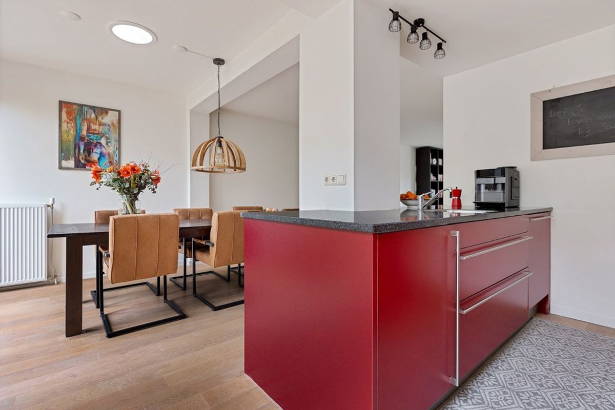 Loop je rechtdoor, dan kom je in de zeer ruime woonkamer met genoeg plek voor een comfortabele zithoek én een royale eettafel. Aan de achterzijde ligt de open keuken, praktisch ingedeeld en uitgerust met een vaatwasser, koelkast, gasfornuis, oven, wastafel met kraan en afzuiging. Vanuit de keuken heb je bovendien direct toegang tot de tuin ideaal voor zomerse diners, kinderen die in- en uitlopen, of gewoon lekker buiten zitten met een kop koffie.