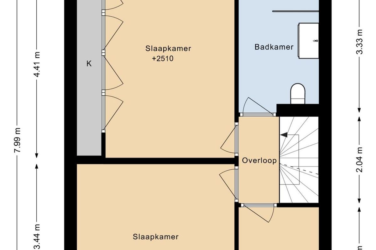 De tweede verdieping biedt twee ruime slaapkamers, ieder met veel lichtinval via de dakkapel en een intieme sfeer door de zichtbare balken. De functionele voorzolder heeft de aansluiting voor de wasmachine en droger en heeft twee ruime bergruimtes.