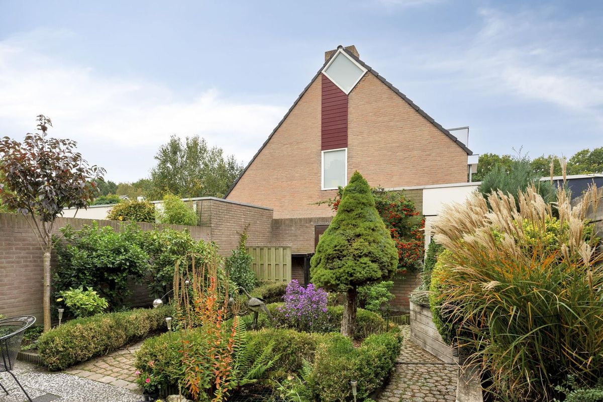 De achtertuin bereik je via de openslaande deuren in de woonkamer. Direct aan huis ligt een betegeld terras, perfect voor je loungeset of buitenkeuken. Verder naar achteren wandel je via slingerende paadjes langs een tuin vol leven: struiken, bosjes en kleurrijke plantenborders zorgen voor een groene oase. Achterin de tuin staat een stenen berging voor al je tuingereedschap of fietsen.