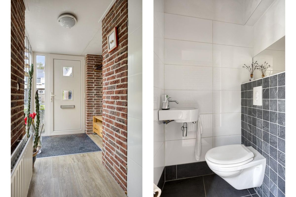 Parkeren doe je gemakkelijk onder je eigen carport of op een van de vele vrije plekken in de directe omgeving. Vanuit de nette voortuin stap je de woning binnen via de voordeur. In de hal vind je een keurig toilet, ruimte voor een garderobe en de deur naar de woonkamer.