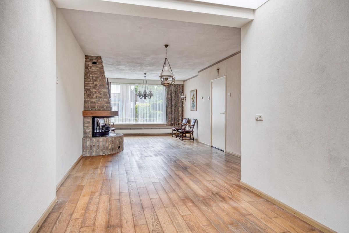 Aansluitend vind je de ruime en uitgebouwde woonkamer met sfeervolle houten vloer, een schouw met open haard en een schuifpui naar de tuin. De lichtstraat in de aanbouw zorgt voor een prettige natuurlijke lichtinval.