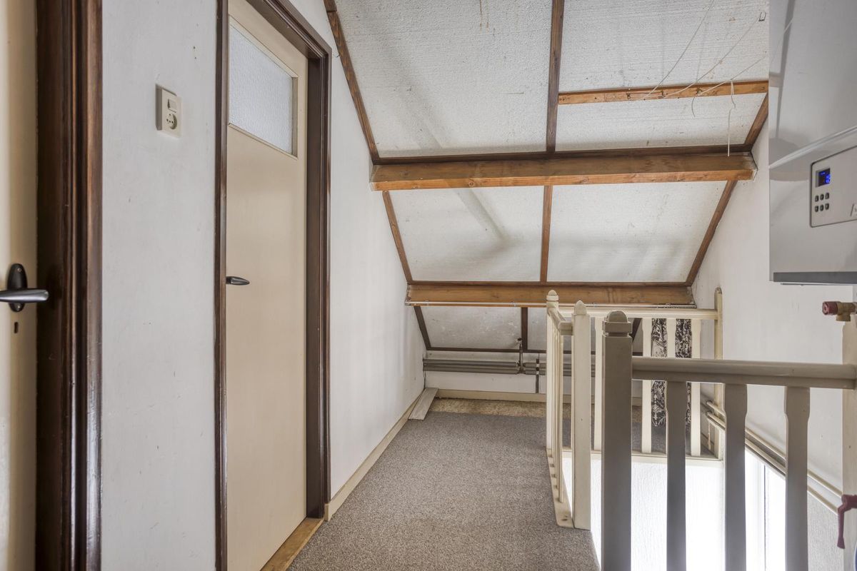 De overloop biedt toegang tot 3, in grootte variërende, slaapkamers en de badkamer. Met een vaste trap kun je naar de 2e verdieping. Alle drie de slaapkamers beschikken over vaste inbouwkasten. De derde slaapkamer is momenteel ingericht als wasruimte met de aansluitingen voor de wasmachine en droger. Vanuit deze kamer heb je toegang tot het plat dak.