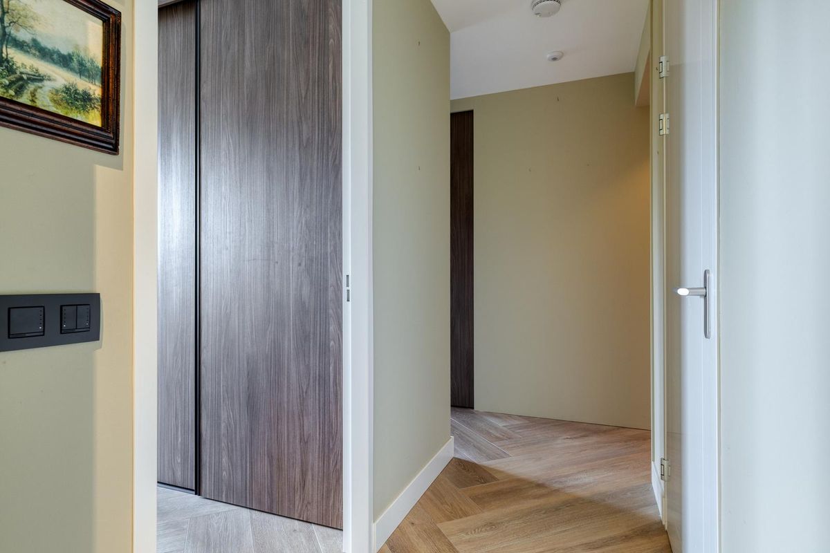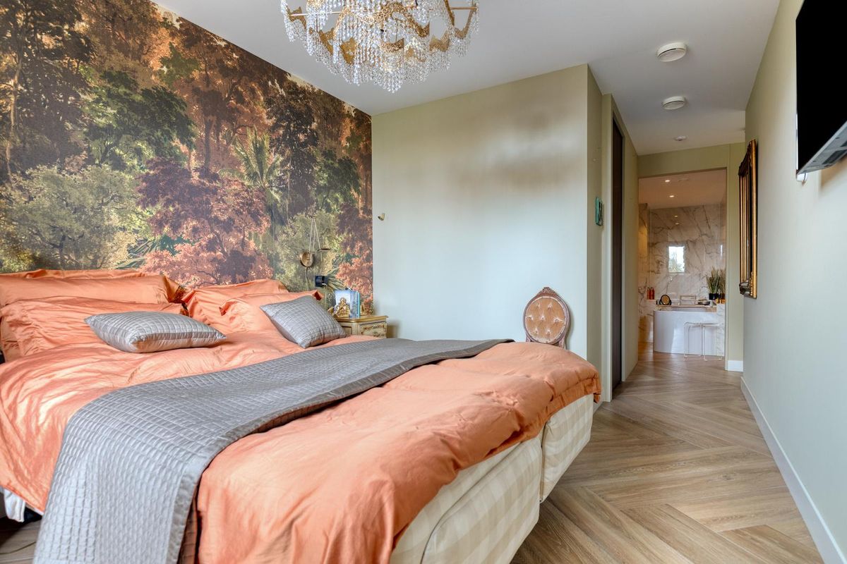 Ook in de slaapkamers is gekozen voor hoogwaardige afwerking en maatwerk. De master bedroom is een oase van rust en licht. Mede dankzij de openslaande deuren naar het tweede balkon is dit een heerlijke plek om de dag ontspannen te beginnen. Een absolute eyecatcher is de stijlvolle walk-in closet, volledig op maat ontworpen en voorzien van geïntegreerde verlichting, waardoor alles overzichtelijk en sfeervol wordt verlicht. De luxe schuifdeur met softclose-mechanisme sluit geruisloos en voegt een extra vleugje elegantie toe. De tweede slaapkamer is eveneens met zorg en oog voor detail ingericht. Dankzij de op maat gemaakte kastenwand biedt de kamer verrassend veel bergruimte, zonder dat dit ten koste gaat van de ruimte. De kasten zijn praktisch ingedeeld en sluiten naadloos aan bij de rest van het interieur.