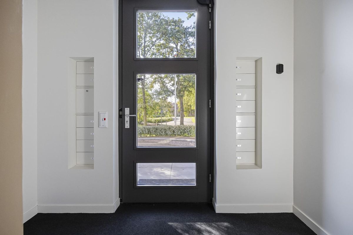 Vanaf de trap of het talud komt u bij de afgesloten entree met brievenbussen en bellentableau. De centrale hal is ruim en licht, en leidt naar het trappenhuis en de lift.
