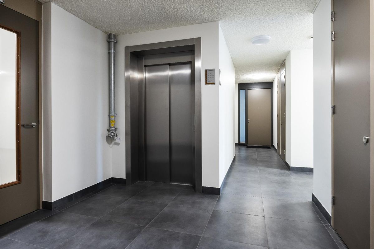 Via de lift of trap komt u op de 1e verdieping waar u de entree van het appartement vindt. De hal is ruim en is ingericht met een garderobe nis en een toiletruimte met wandcloset en fonteintje. Vanuit de hal is er toegang tot de berging / stookruimte met opstelplaats voor de warmtepomp en de warmte-terug-win-installatie (WTW). In deze berging is nog voldoende ruimte voor een extra koelkast of vriezer.