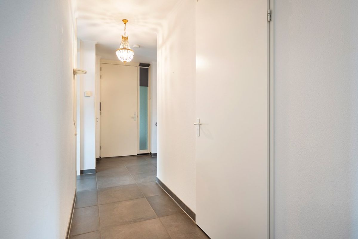 Toegang tot 2 slaapkamers. Vanuit de hal is de lichte woonkamer bereikbaar.