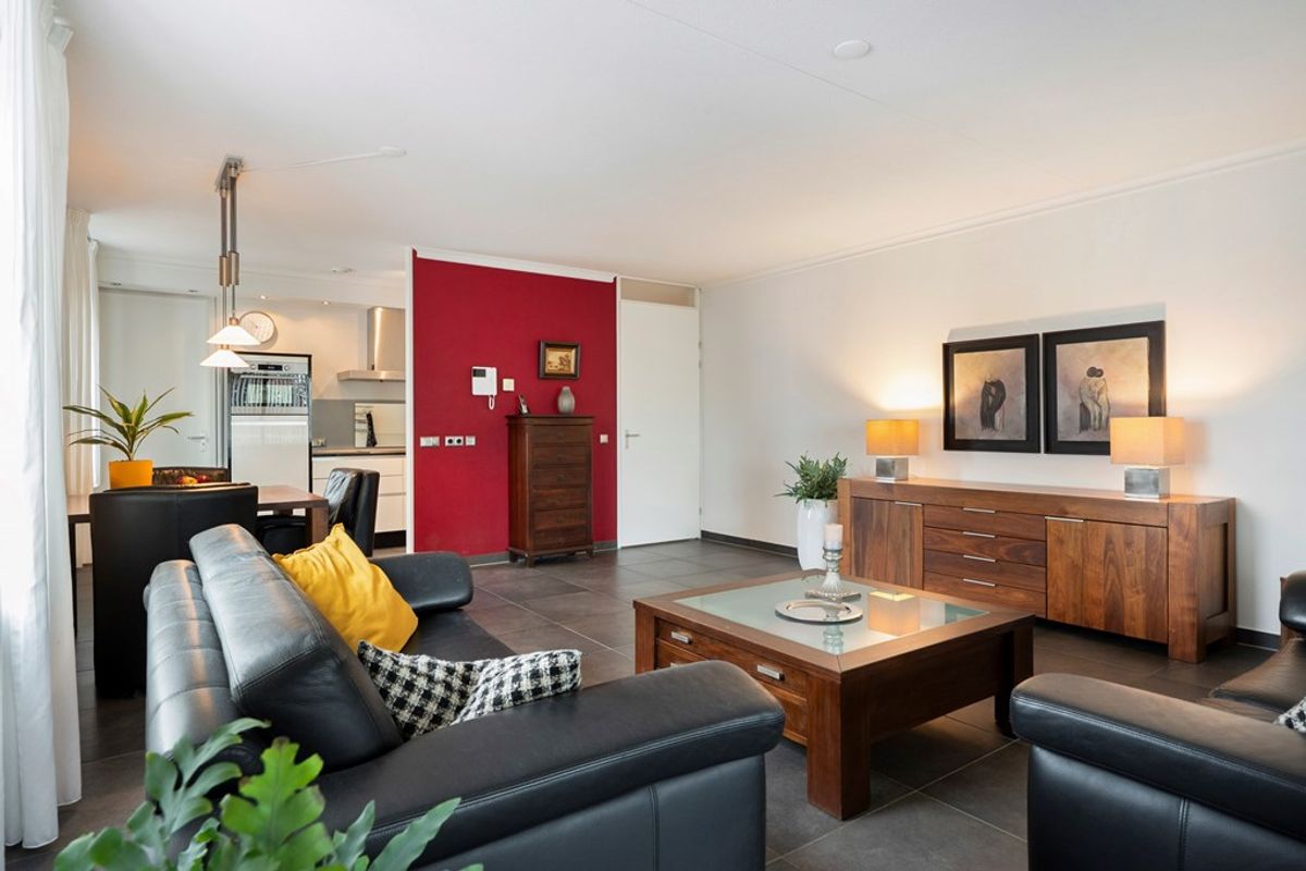 De woonkamer staat in directe verbinding met de keuken.