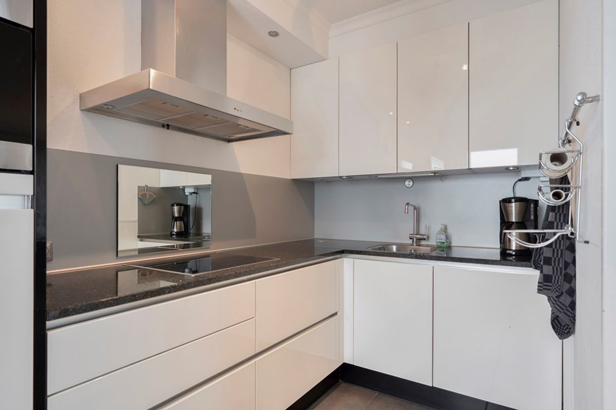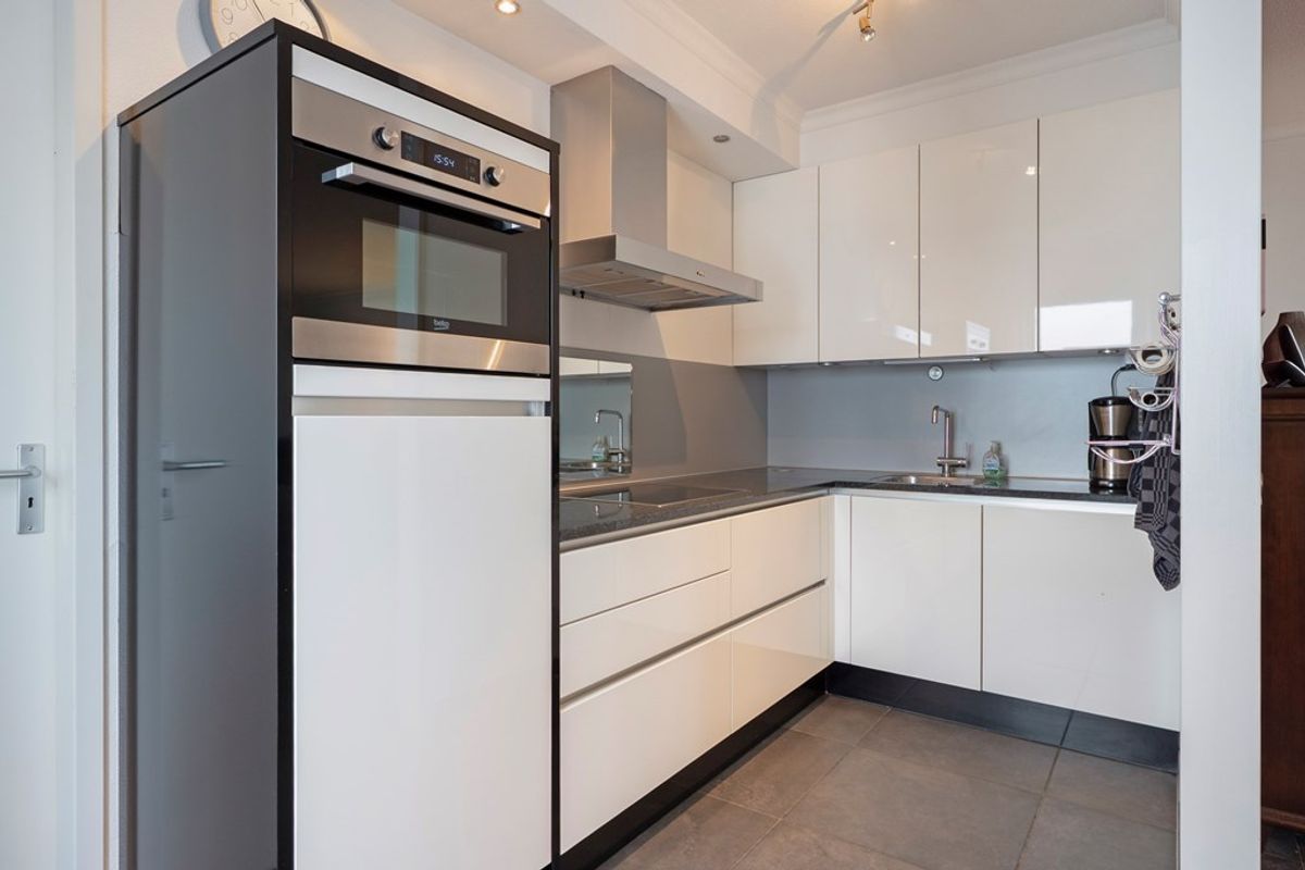 De keuken is voorzien van de volgende inbouwapparatuur: koelkast, combi-oven, vaatwasser, inductiekookplaat en een afzuigkap.