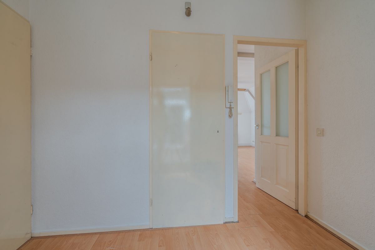 Entree/hal met meterkast en intercominstallatie. Vanuit de hal bereikt u de lichte woonkamer met open keukenverbinding en toegang tot het balkon.