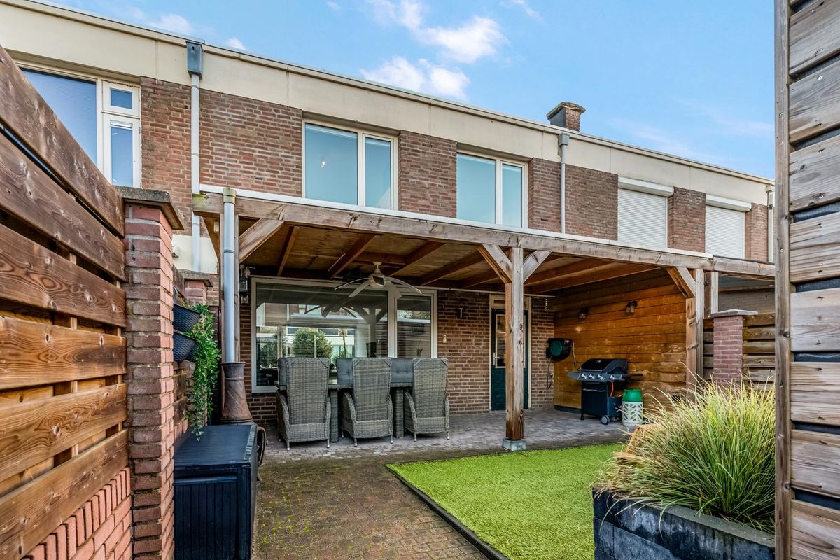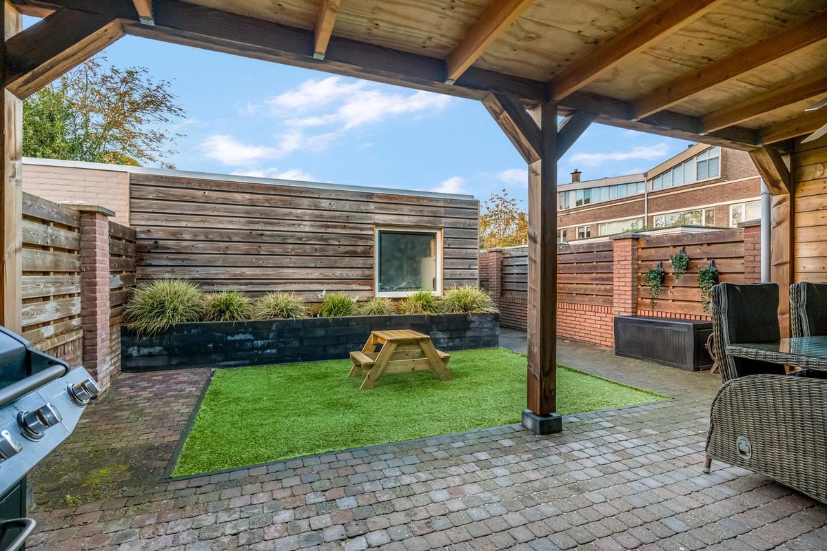 De achtertuin is in 2019 volledig vernieuwd en omgetoverd tot een onderhoudsvriendelijke, gezellige buitenruimte. De grote overkapping over de hele breedte van de tuin zorgt ervoor dat je er het hele jaar door kunt genieten, of het nu zomer of winter is. Nieuwe schuttingen, een opgeknapte schuur en een nieuwe poort maken het helemaal af. Met een achterom voor de fiets en volop privacy is dit zowel een praktische tuin als een plek om echt te ontspannen.