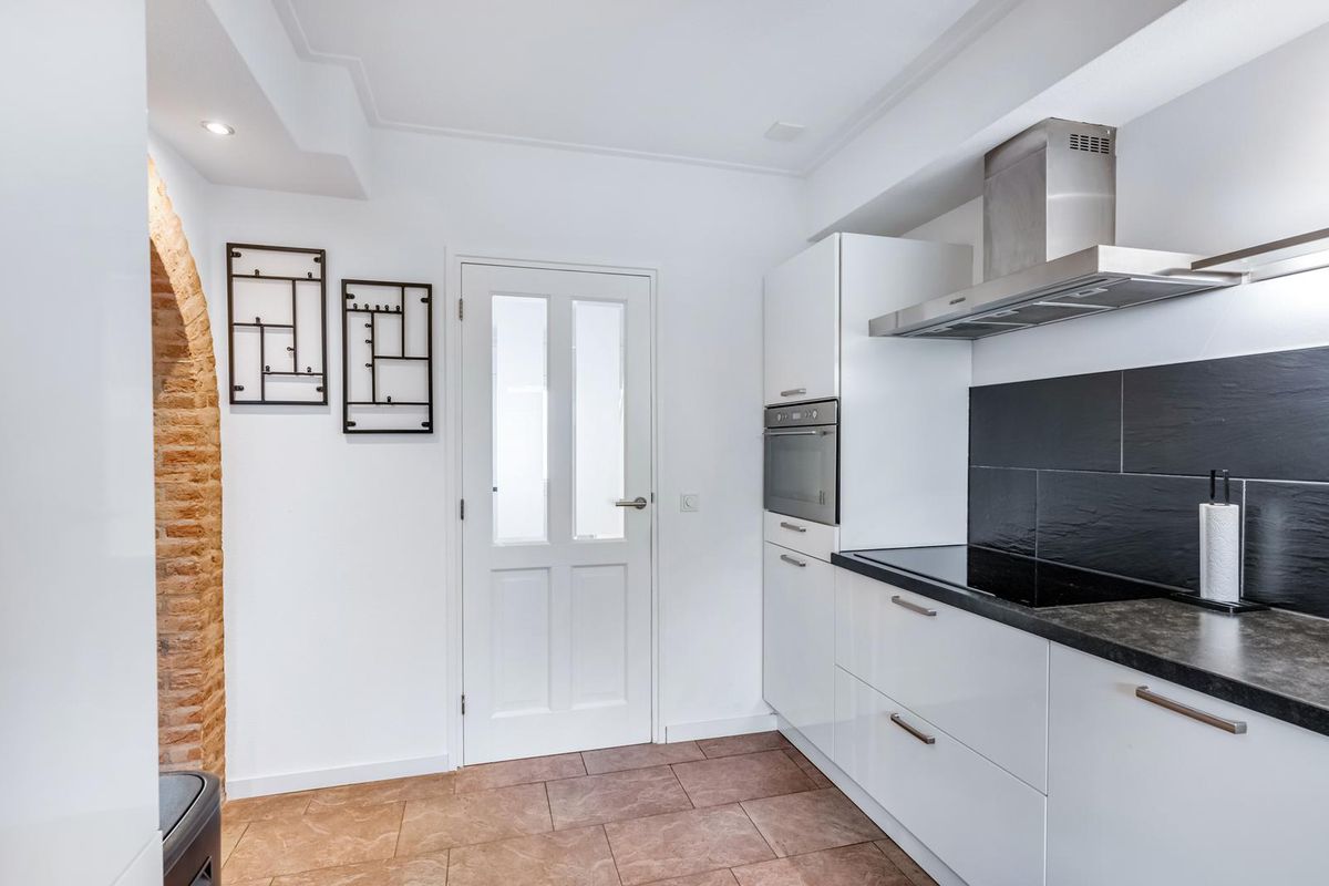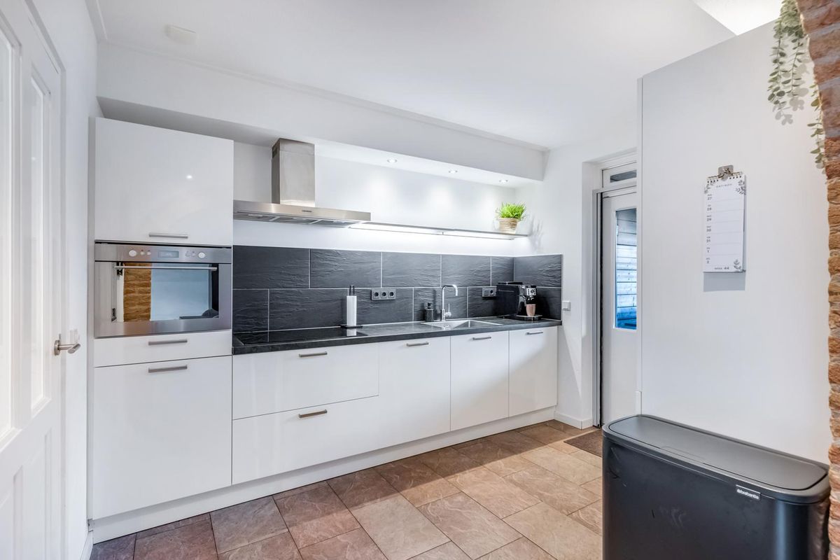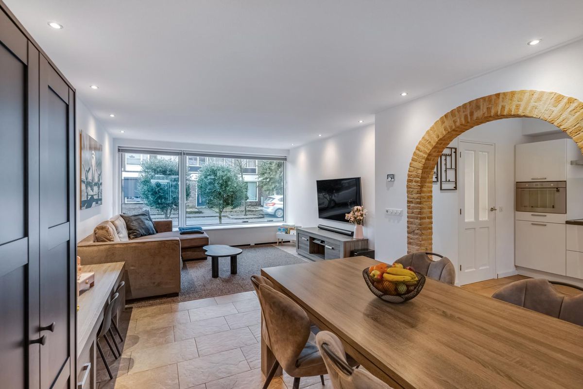 De woonkamer is ruim, met grote ramen die zorgen voor mooi lichtinval. De moderne keuken is een echte blikvanger: praktisch, stijlvol en verbonden met de woonkamer via een fraaie boog, een detail dat karakter toevoegt. De indeling is doordacht, waardoor de leefruimte open, maar toch gezellig aanvoelt.