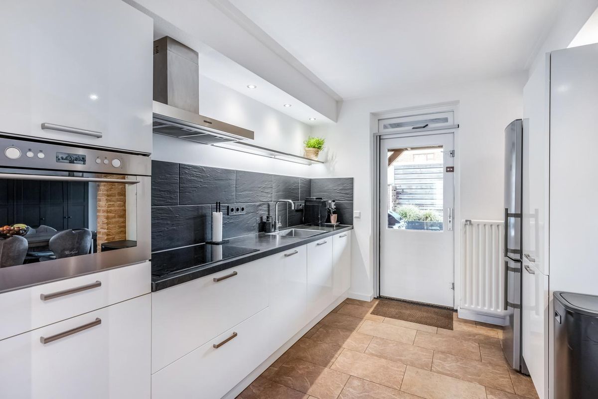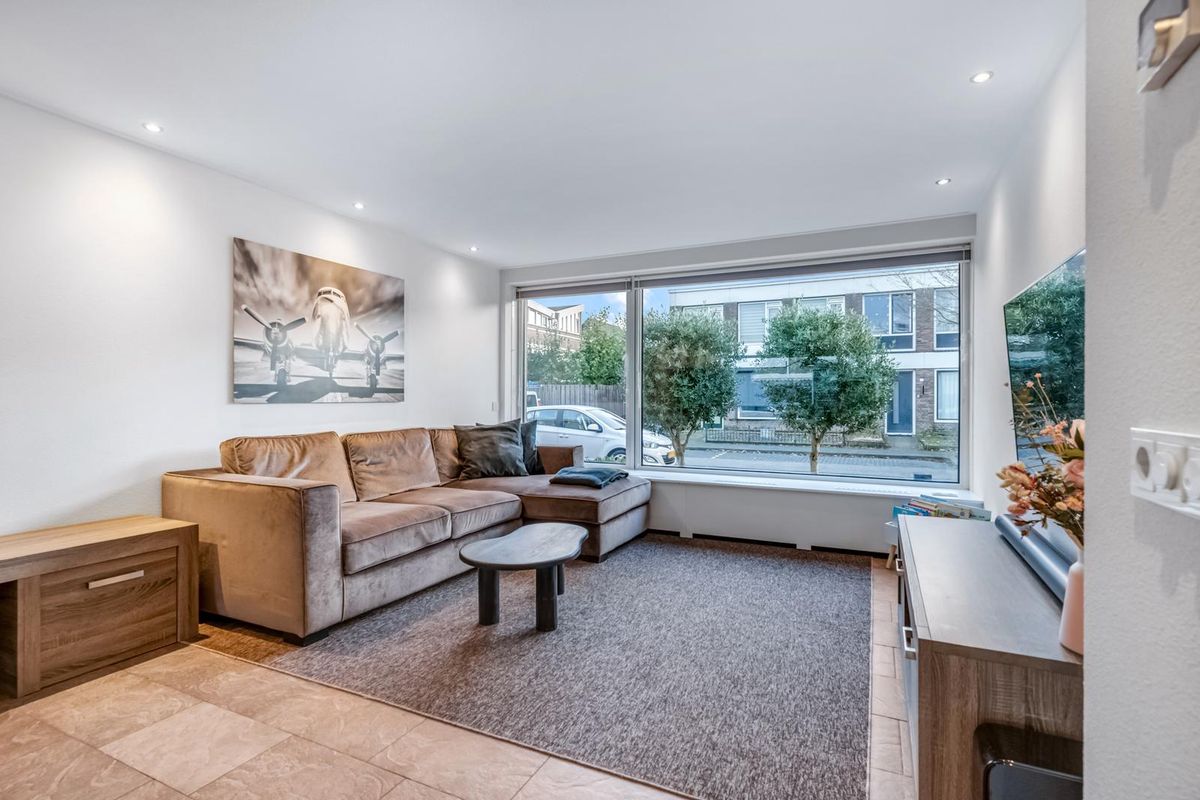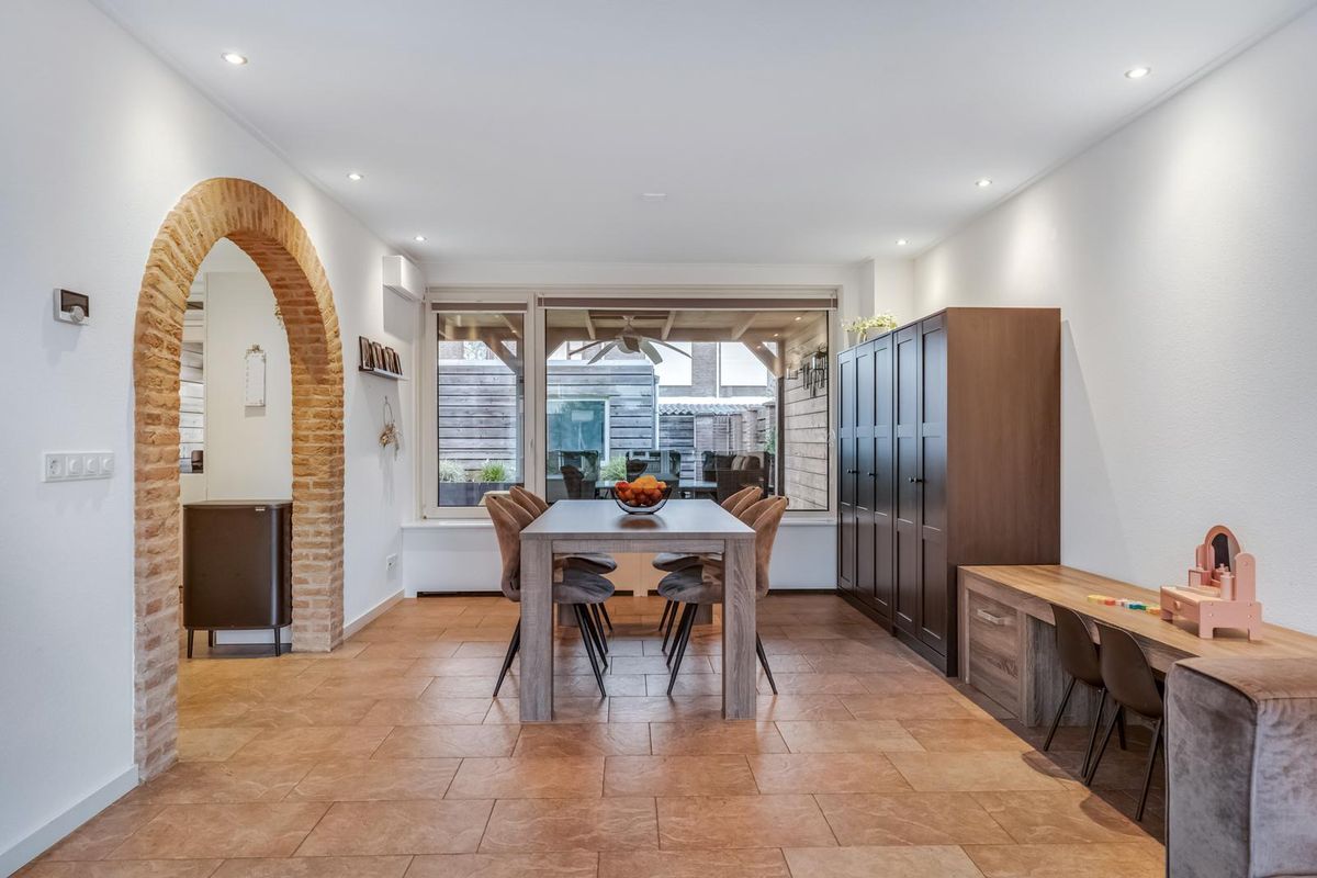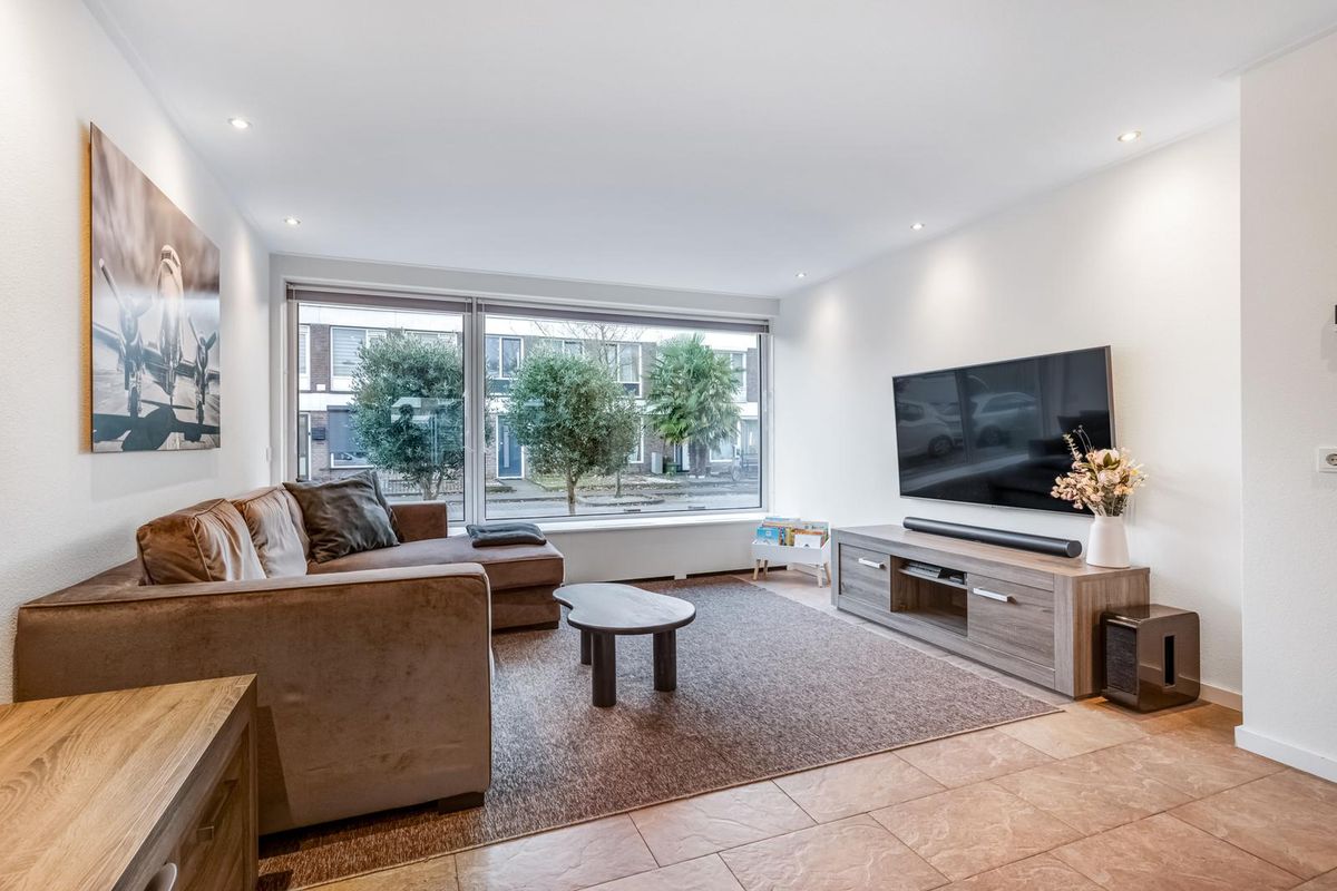 De woonkamer is ruim, met grote ramen die zorgen voor mooi lichtinval. De moderne keuken is een echte blikvanger: praktisch, stijlvol en verbonden met de woonkamer via een fraaie boog, een detail dat karakter toevoegt. De indeling is doordacht, waardoor de leefruimte open, maar toch gezellig aanvoelt.