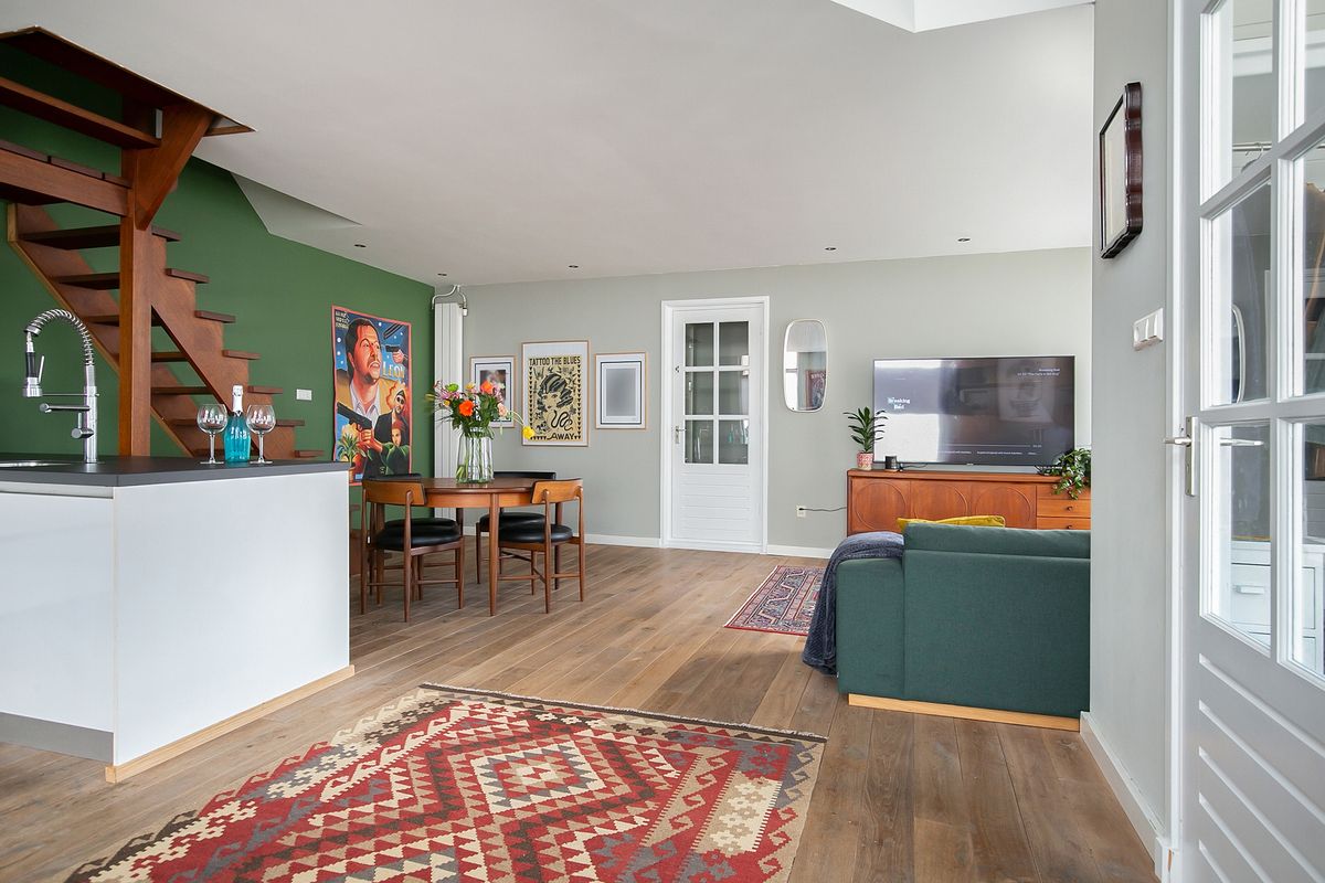 Woonkamer en keuken hebben een mooie houten vloer. Vanuit de woonkamer is er toegang tot kleine hal met zwevend toilet en bergruimte.