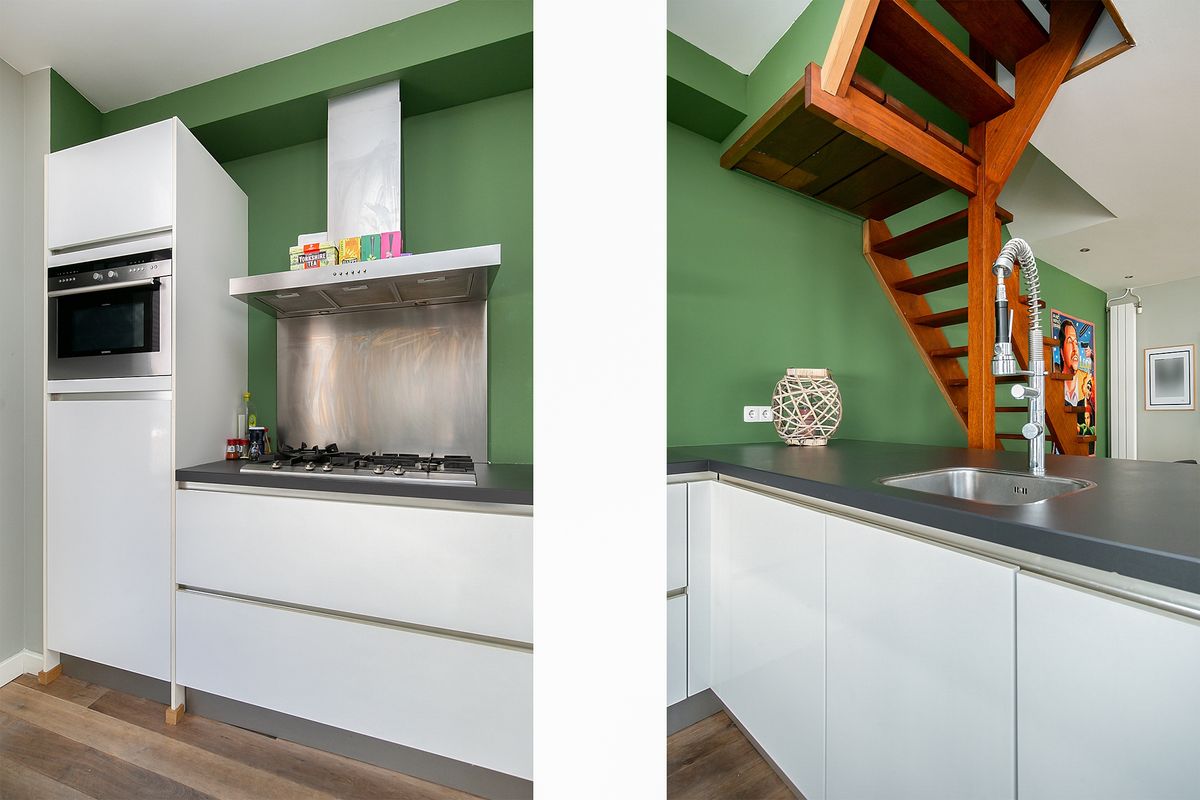 De ruime en lichte woonkamer met open moderne keuken voorzien van inbouw apparatuur te weten: vaatwasser, koelkast vriezer, combi-oven