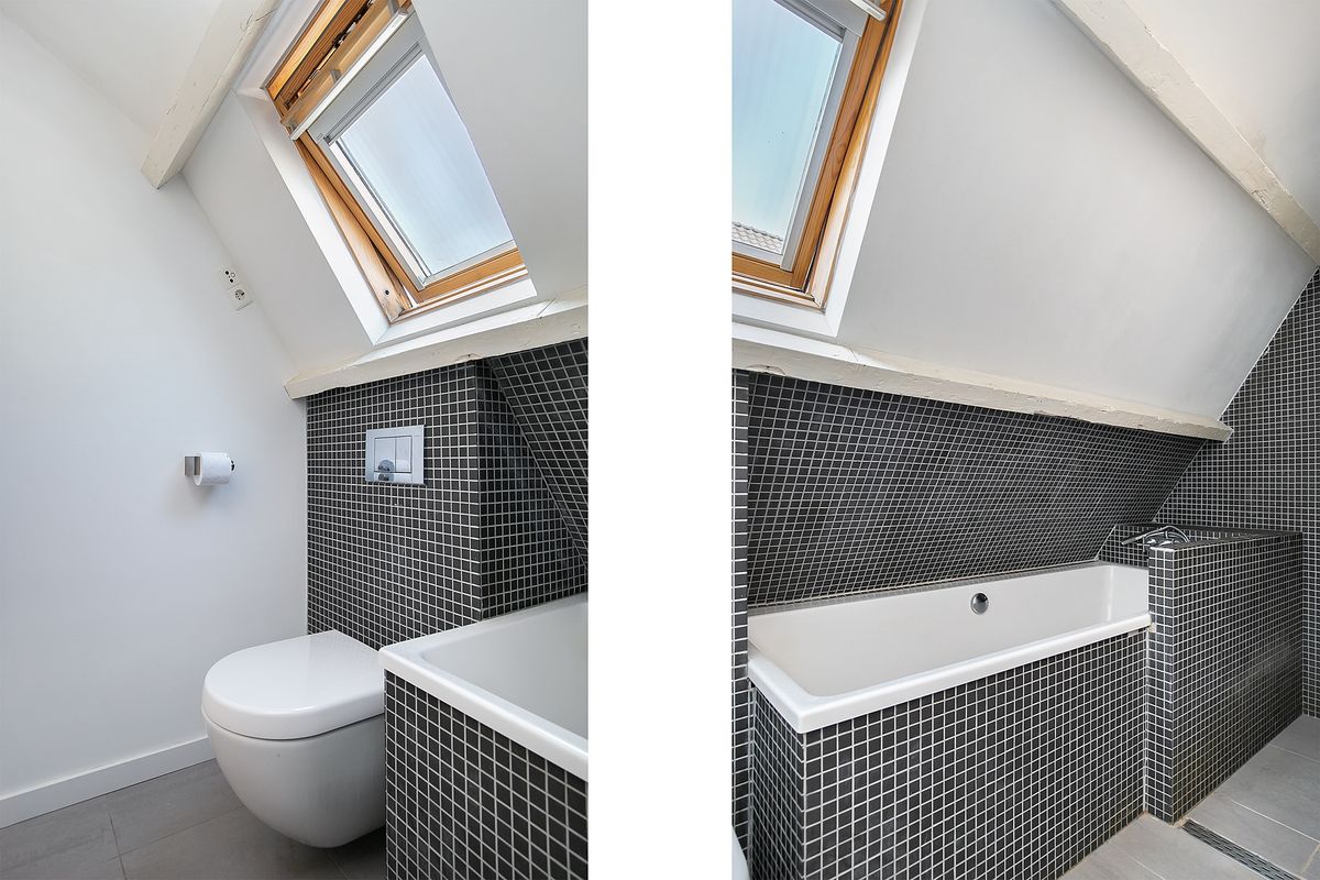 Moderne nieuwe badkamer voorzien van inloop-douche, 2e zwevend toilet, wastafelmeubel en ook nog een ligbad.