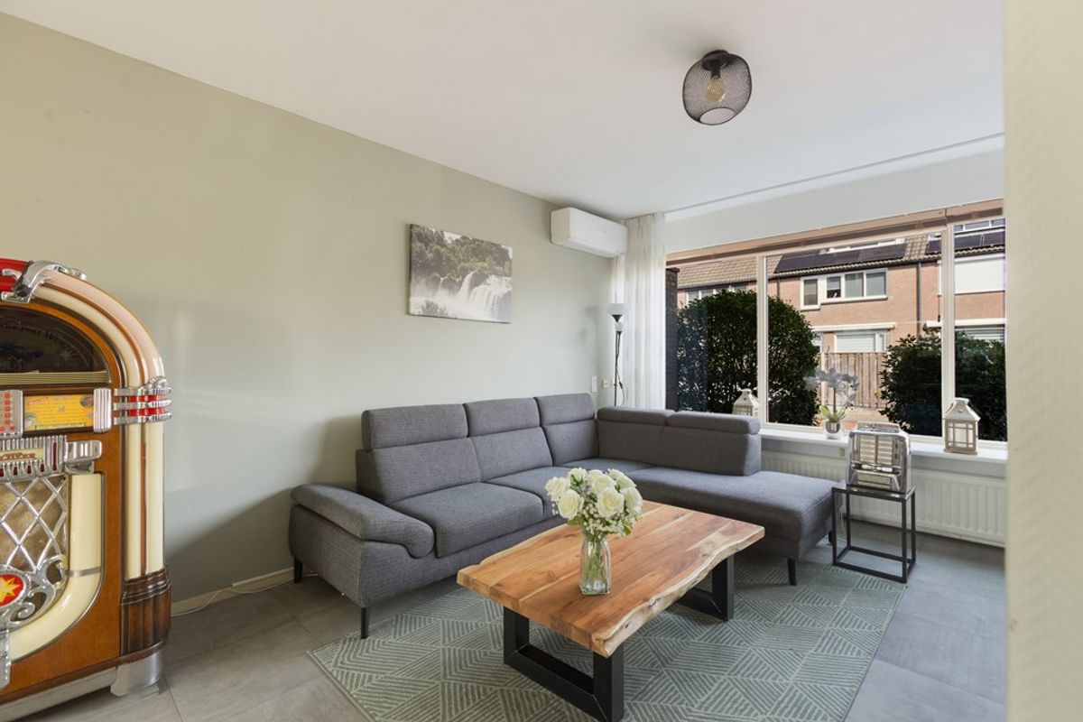 Entree/hal met meterkast, trapopgang en trapkast. Toiletruimte met fonteintje. Lichte woonkamer met airconditioning en toegang tot de verzorgde achtertuin. De open keuken uit 2022 is modern uitgevoerd en voorzien van een inductiekookplaat met bladafzuiging, combi-oven, koelkast, vriezer, vaatwasser en een kokend waterkraan (Whirlpool). Via een deur én dubbele tuindeuren is er direct toegang tot de tuin met ruime overkapping.
