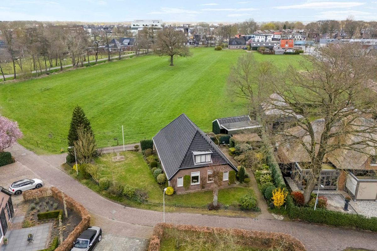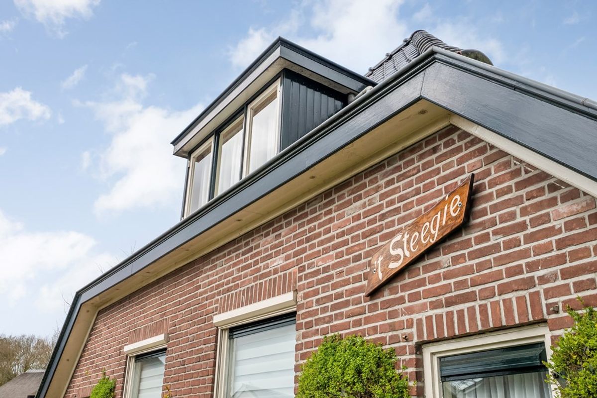 Je merkt het meteen als je de straat inrijdt – hier hangt nog de sfeer van een brinkendorp, gezellig en vertrouwd. Deze woonboerderij is absoluut een plaatje; de authentieke staldeuren, oude houten gebinten en die sfeervolle stalramen zorgen ervoor dat het huis zijn historie niet is vergeten. Op het voorhuis prijkt met trots de naam ‘t Steegje’, en als je goed kijkt, zie je overal charmante details die dit huis zo uniek maken.