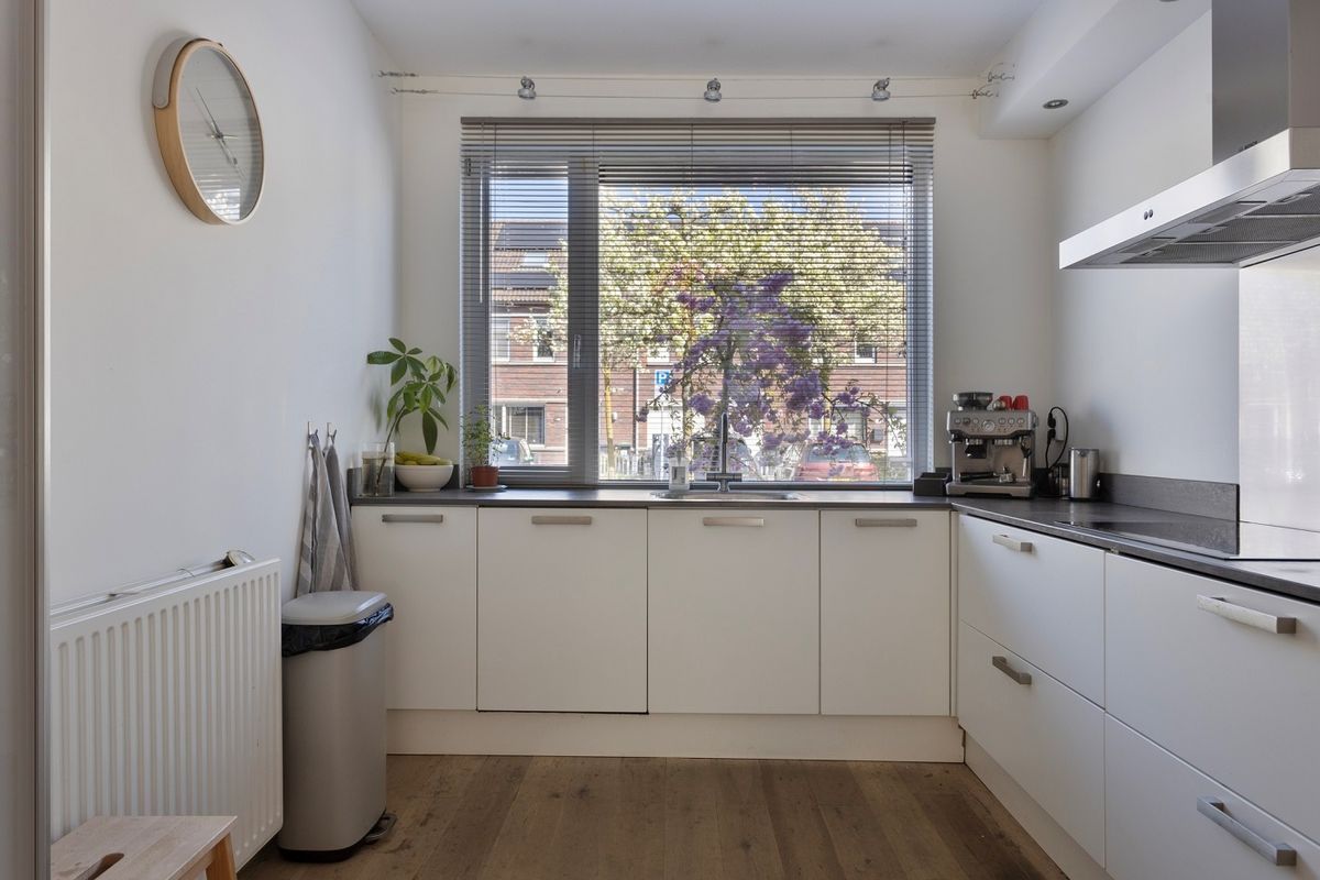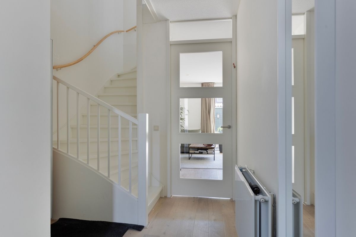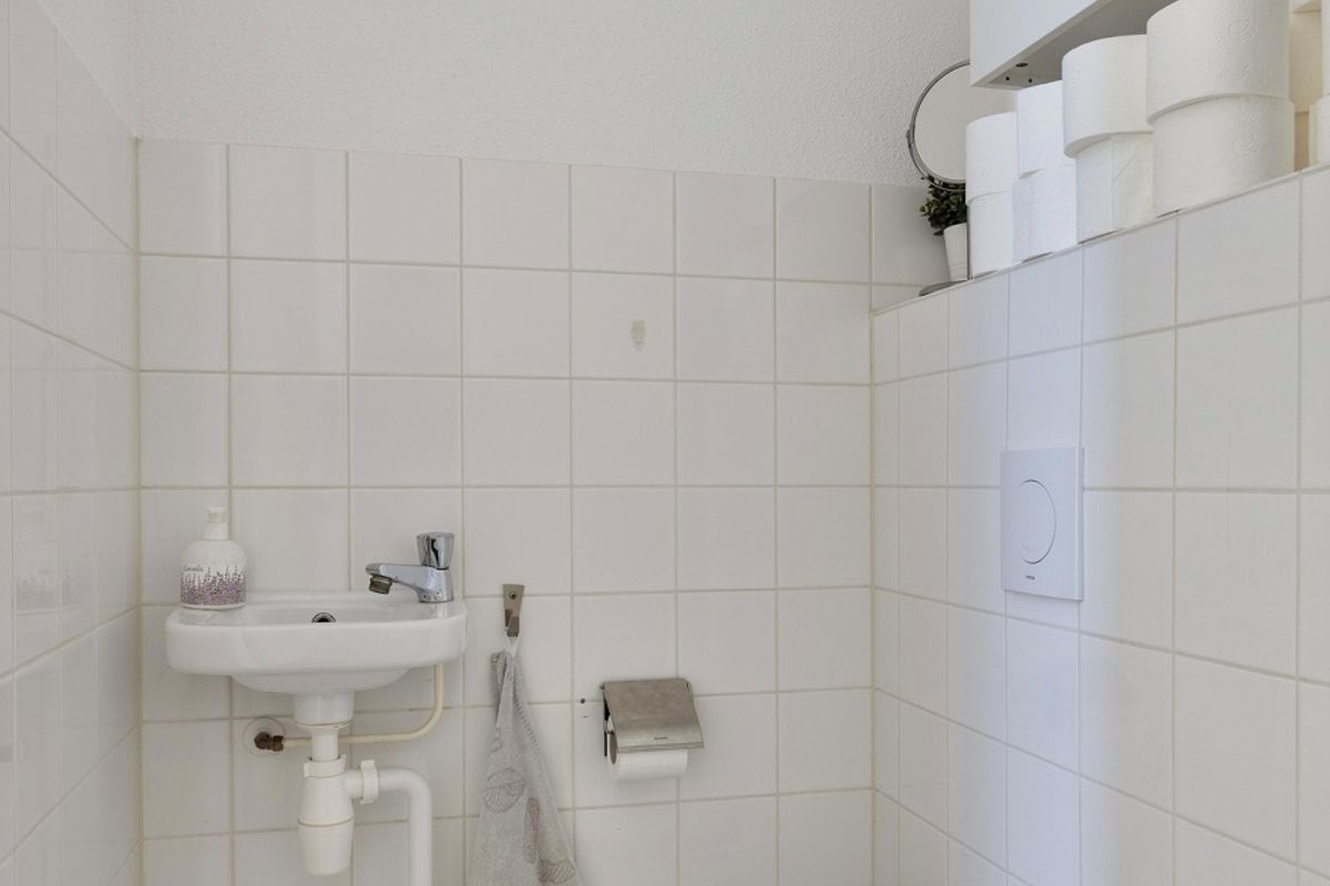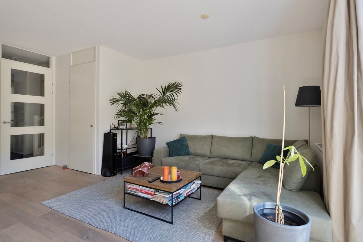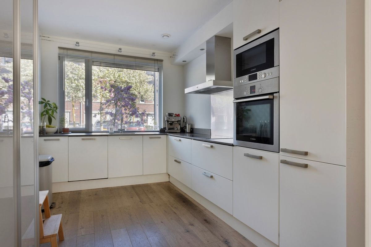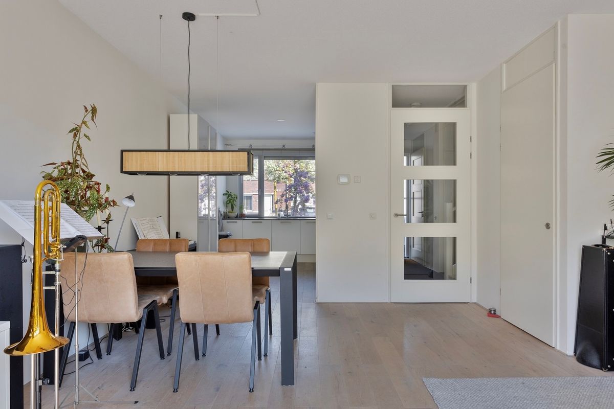 Begane grond: Bij binnenkomst in de woning bevindt zich de entree met toegang tot de meterkast, een toilet met fonteintje, en de woonkamer. De ruime woonkamer is voorzien van een onderhoudsvriendelijke laminaatvloer en biedt een zithoek aan de tuinzijde. De open L-vormige keuken bevindt zich aan de voorzijde van de woning en is voorzien van moderne inbouwapparatuur, waaronder een inductiekookplaat, afzuigkap, koel/vriescombinatie, combi-magnetron, vaatwasser en een spoelbak. Dankzij de brede opzet van de keuken is er ruimte voor een extra eettafel of kast.