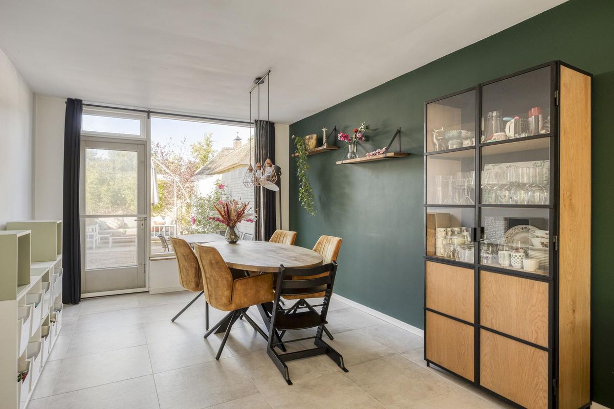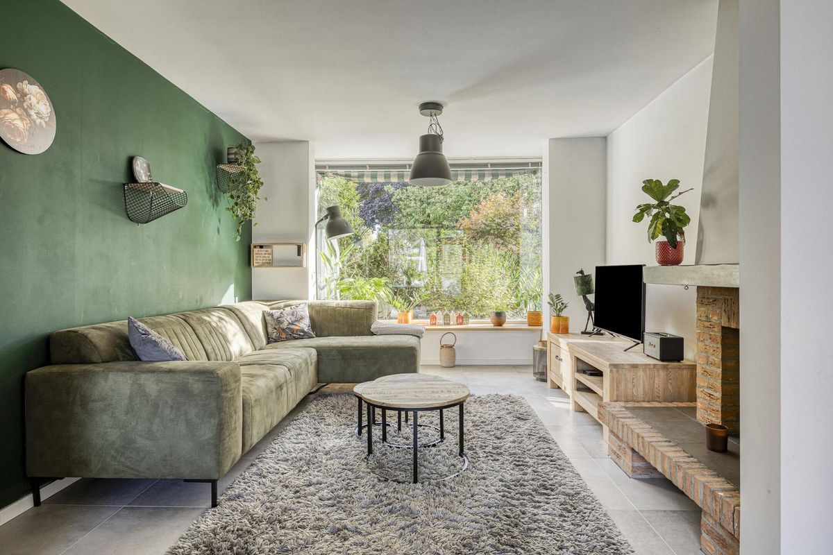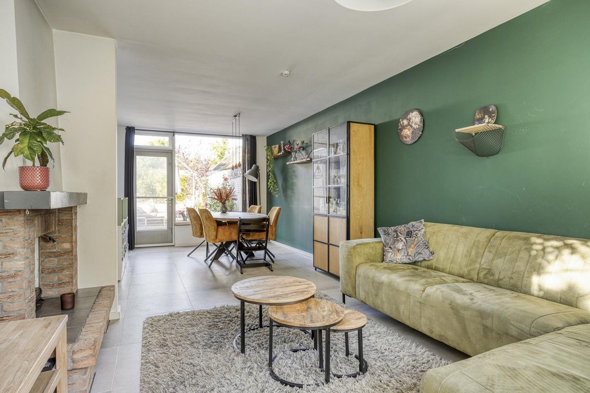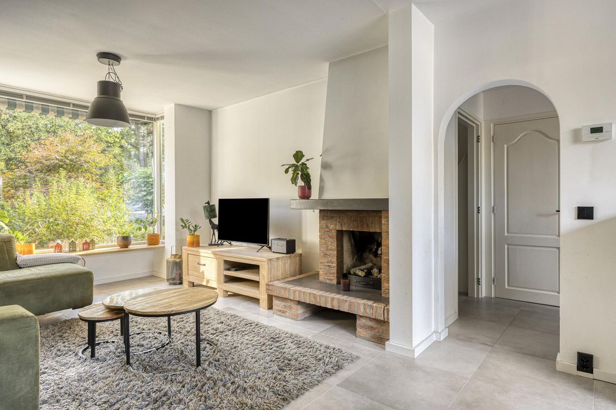De woonkamer voelt direct ruimtelijk en gezellig. Dankzij de erker aan de voorzijde en de grote ramen aan de achterzijde baadt de ruimte in daglicht. Hier kun je een royale hoekbank kwijt om ’s avonds samen een film te kijken. Aan de andere kant is er plek genoeg voor een lange eettafel: ideaal voor gezellige etentjes of spelletjesavonden. Midden in de kamer staat de haard – op een koude winterdag laat je hier de vlammetjes dansen.