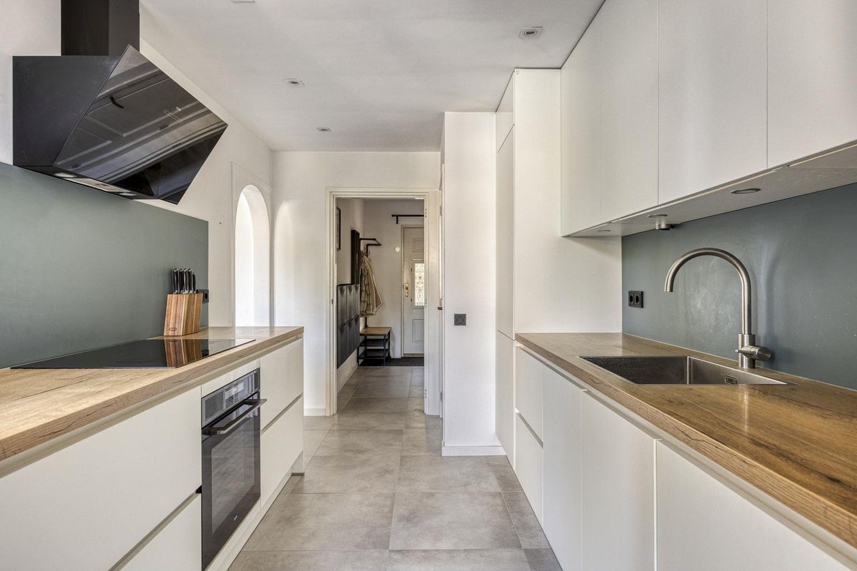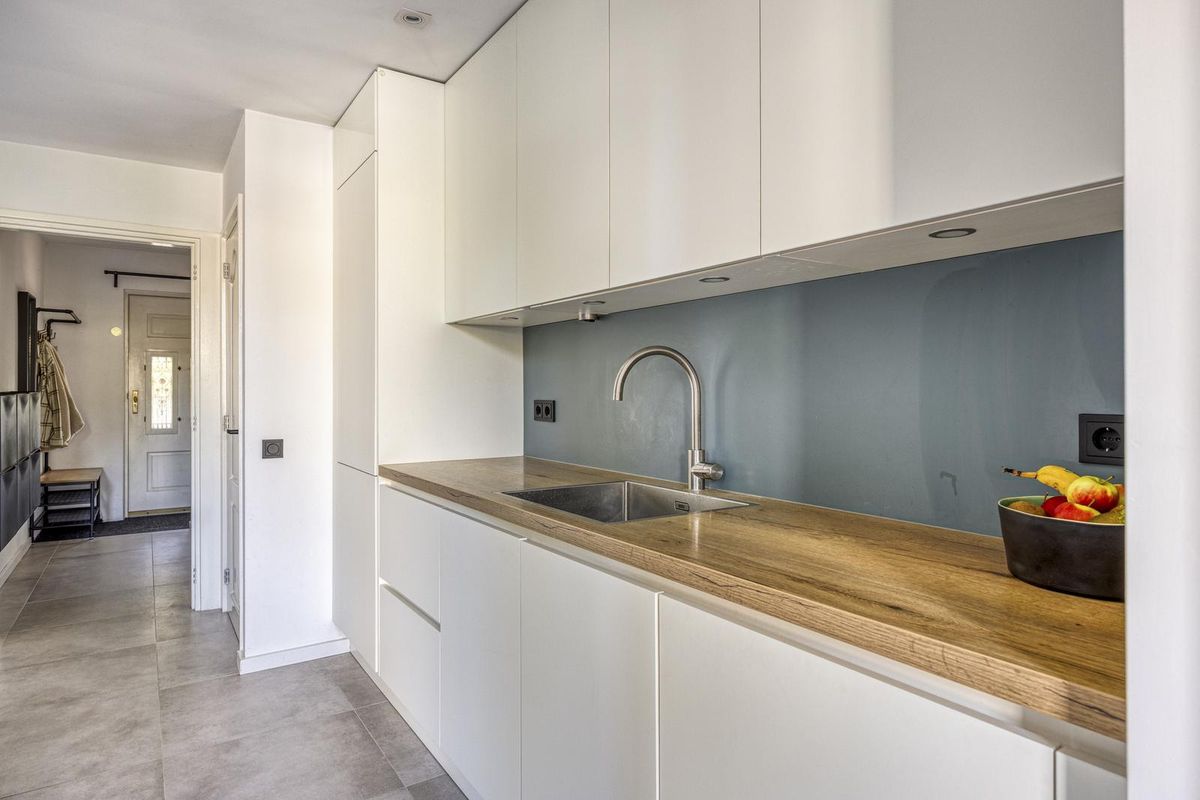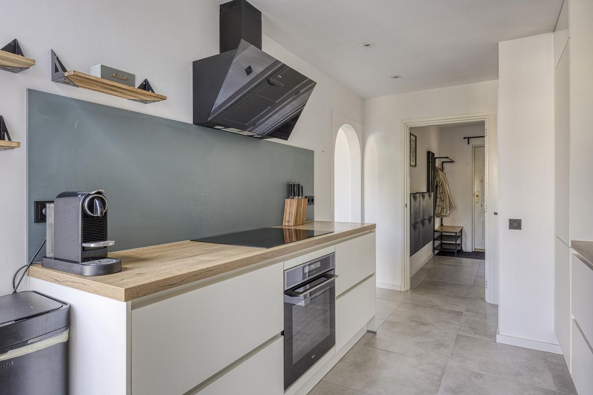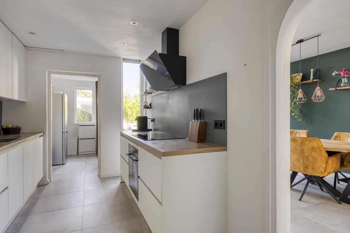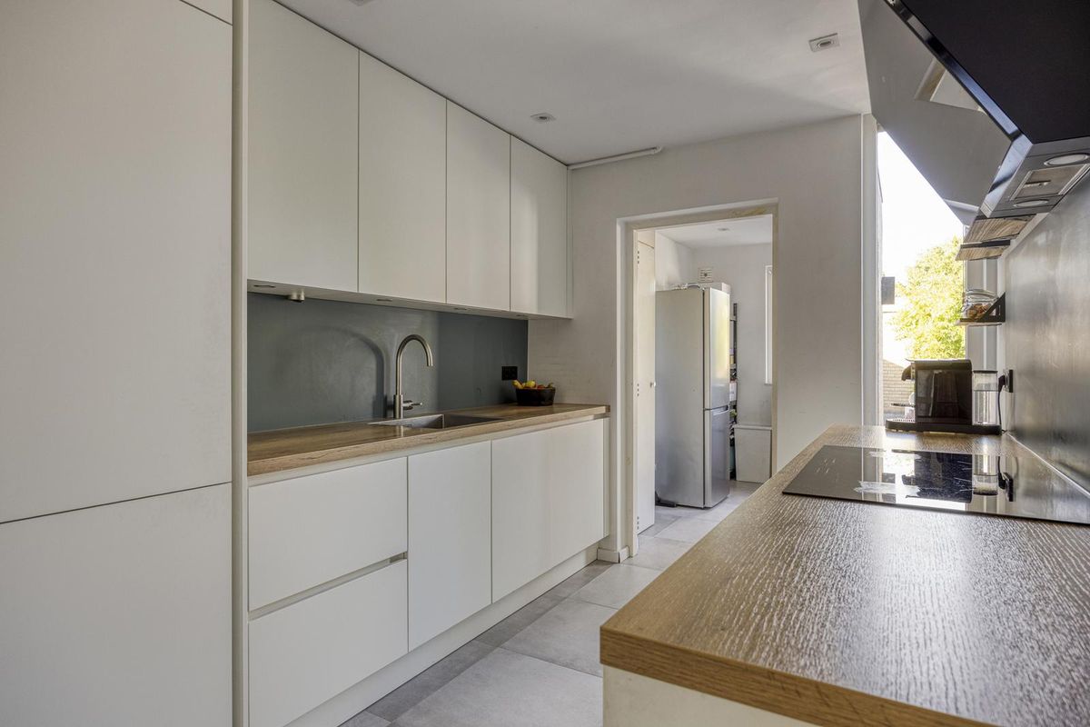 De keuken (2021) is modern en slim ingedeeld. In het ene blok vind je de vaatwasser, spoelbak, koelkast en diepvries, in het andere een breed werkblad, inductiekookplaat met afzuigkap en een oven. Terwijl jij kookt, zet je iemand anders aan het werk om alvast groente te snijden – ruimte genoeg!