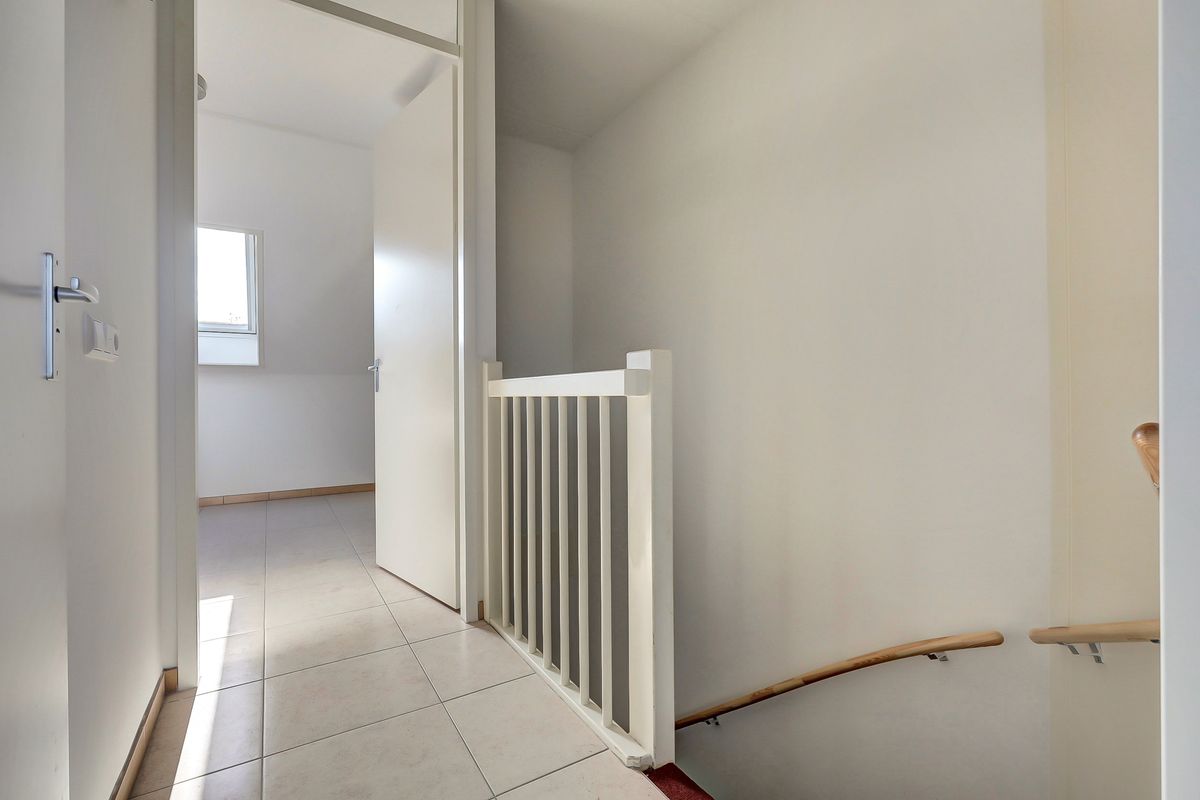 Via de voortuin komt u in de hal waar het betegelde hangtoilet zich bevindt en de vaste trap naar de slaapverdieping. Hier vind u ook de meterkast voorzien van een extra groep voor het opladen van uw elektrische auto. Waarvoor een landpunt is geplaatst op de voorgevel.