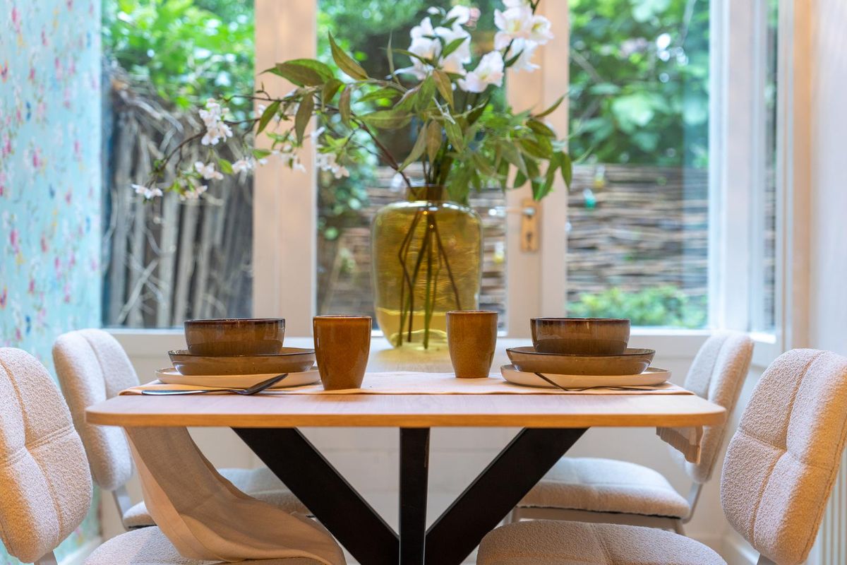 At the front lies a well-sized bedroom. At the rear is the conservatory, currently used as a dining room but also suitable as a second bedroom or workspace.