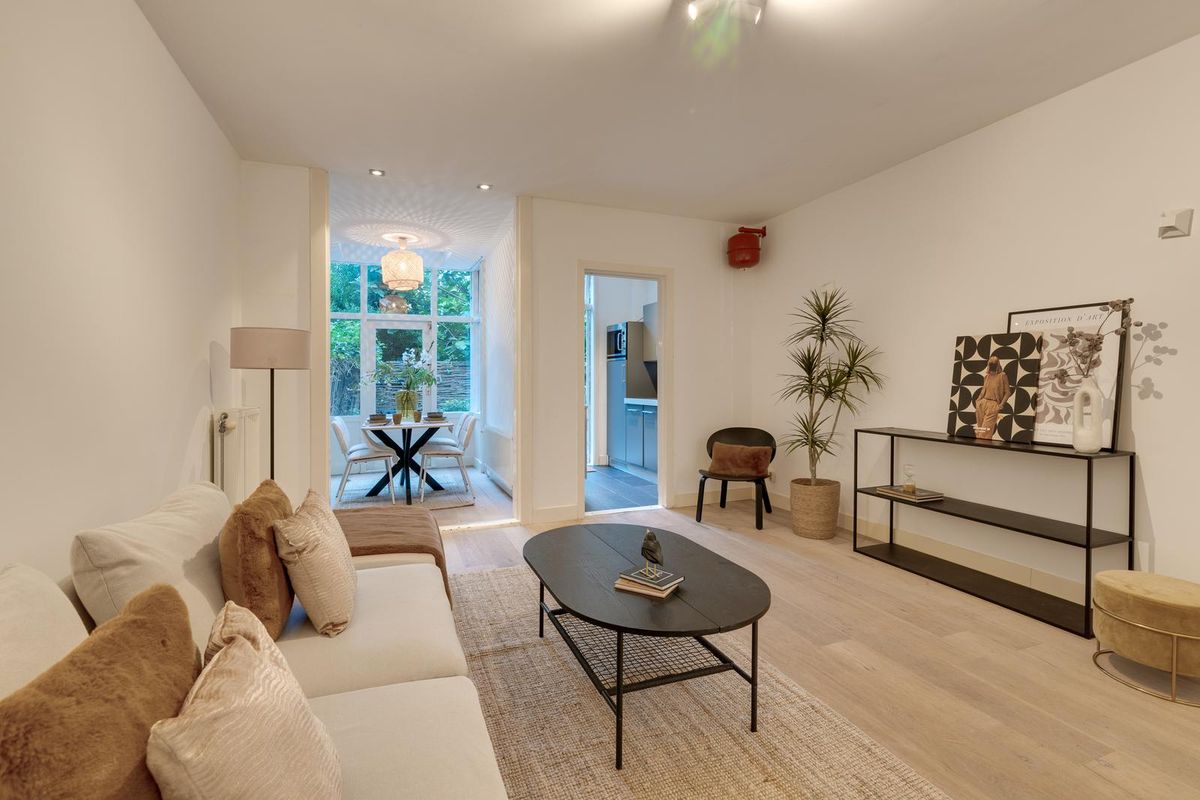 In a quiet yet very central location, with the Jordaan and Westerpark within walking distance, lies this well-maintained 2-room apartment with conservatory and private garden. The property is on the ground floor of a well-kept building and has its own entrance, living room, modern kitchen, neat bathroom, and a lovely garden of approx. 20 m². The conservatory, currently used as a dining room, offers the possibility of a second bedroom.