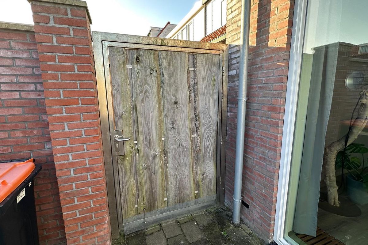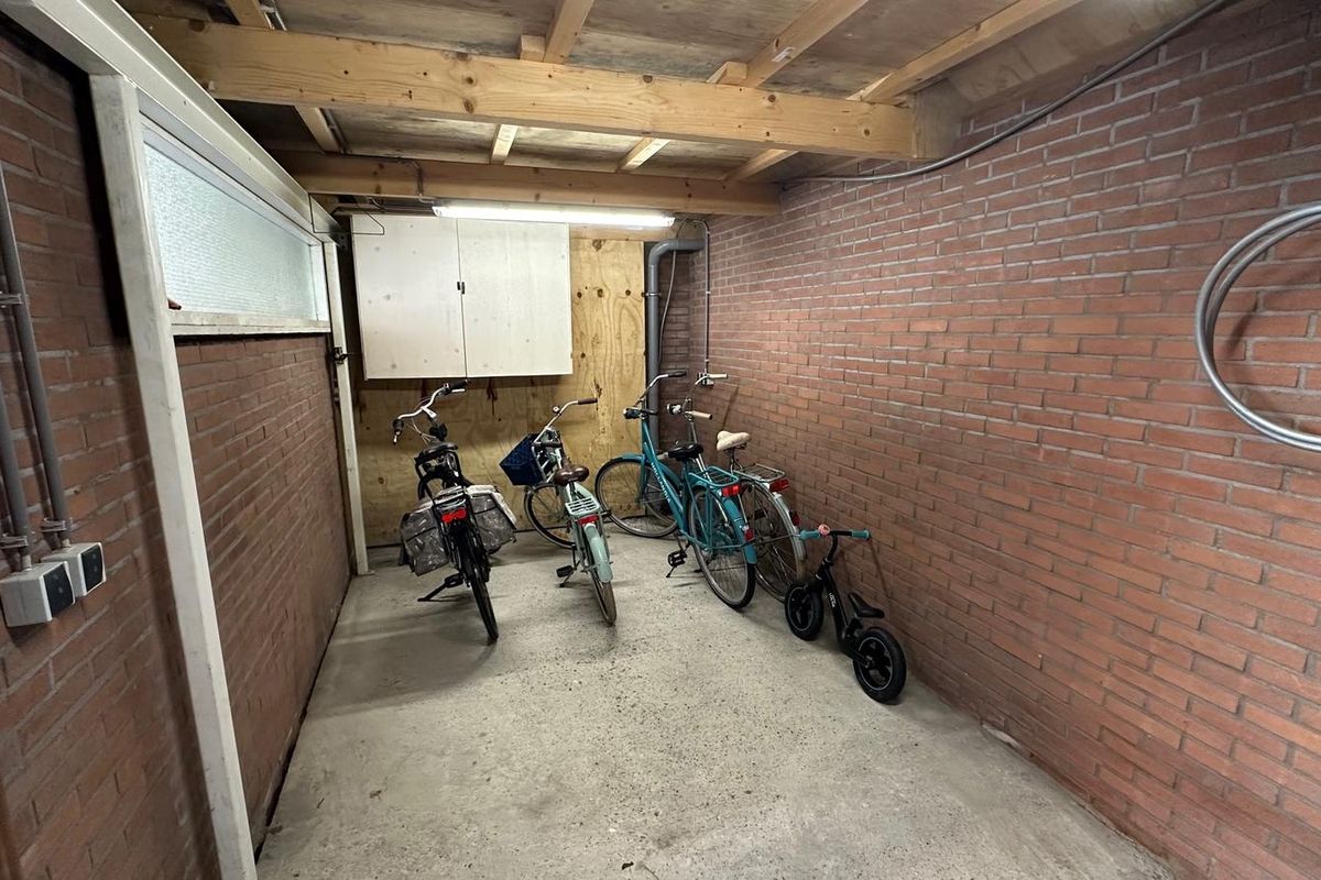 Via de voortuin toegang tot de woning. Tochtportaal, hal met trapopgang, trapkast en modern vrijdragend toilet met fontein. De keuken bevindt zich aan de voorzijde van de woning en is voorzien van alle wenselijke inbouwapparatuur. De woonkamer is uitgebouwd en zodoende erg ruim. Via openslaande deuren toegang tot de verzorgd aangelegde achtertuin met achterom (zijpoort), bestrating, beplanting en een ruime vrijstaande stenen berging met overkapping. De berging biedt extra bergruimte op de vliering.