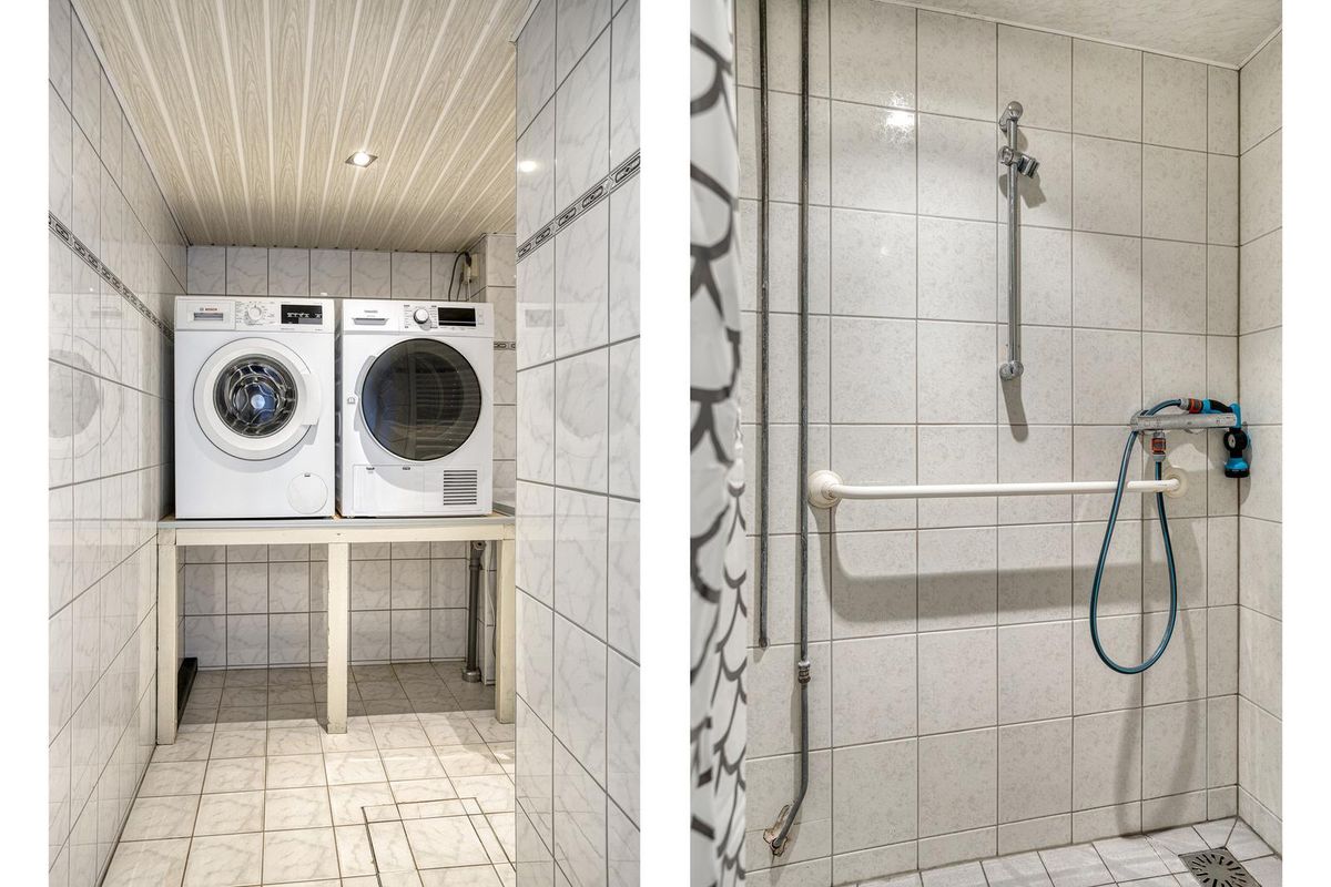 De begane grond verwelkomt je met een ruime hal, voorzien van meterkast en een apart toilet. Vanuit hier stap je de lichte woonkamer in, die direct grenst aan de zonnige achtertuin – perfect voor een naadloze overgang van binnen naar buiten. De open keuken is uitgerust met een praktisch keukenblok met spoelbak en koelkast. Aansluitend bevindt zich een royale slaapkamer en een complete badkamer met douche, radiator en aansluitingen voor wasmachine en droger. De gehele begane grond is voorzien van comfortabele vloerverwarming, wat zorgt voor een aangename en gelijkmatige warmte.