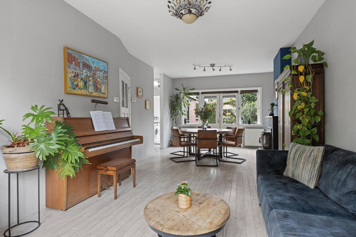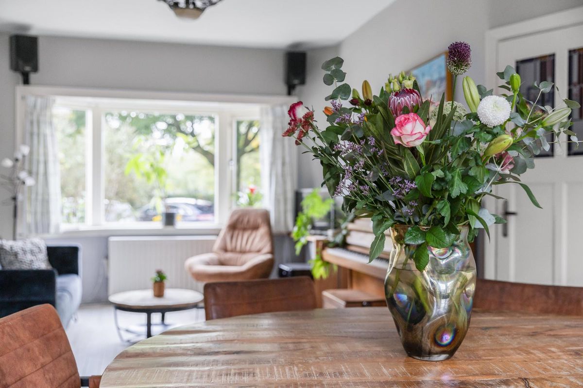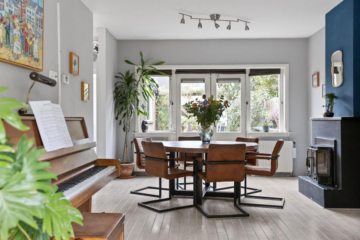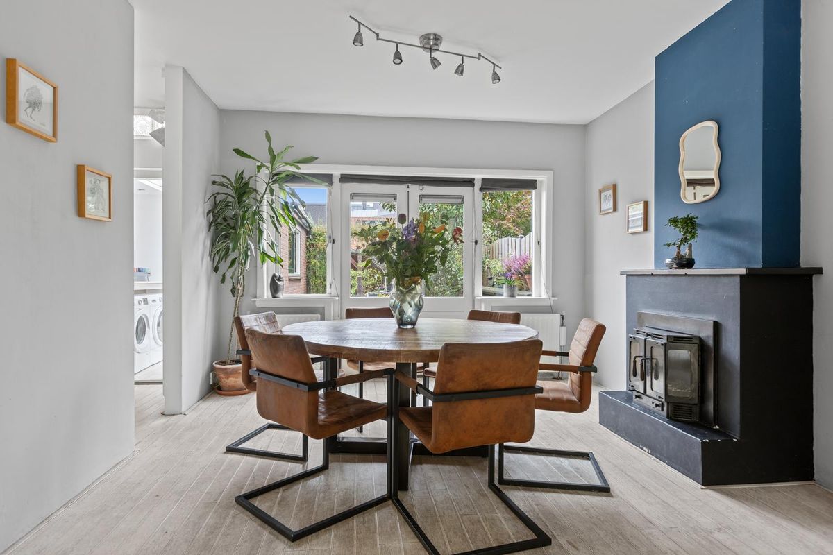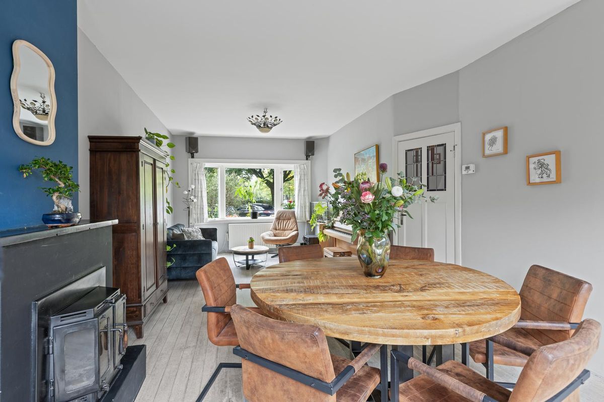 Via de hal kom je binnen in de woonkamer. De plek om samen te eten, spelen en te ontspannen. Zo is er ruimte voor een gezellige zithoek om na een drukke werkdag tot rust te komen. Vanuit jouw favoriete fauteuil geniet je van het uitzicht over het groene park voor de woning. Ook is er ruimte voor een eethoek om met het hele gezin uitgebreid te kunnen tafelen en waar de kids na school samen een spelletje spelen. De houtkachel zorgt op winterse dagen voor nog wat extra gezelligheid. Openslaande deuren aan de achterzijde van de woonkamer bieden direct toegang tot de achtertuin. Zo voelt de tuin op zomerse dagen als jouw tweede woonkamer.