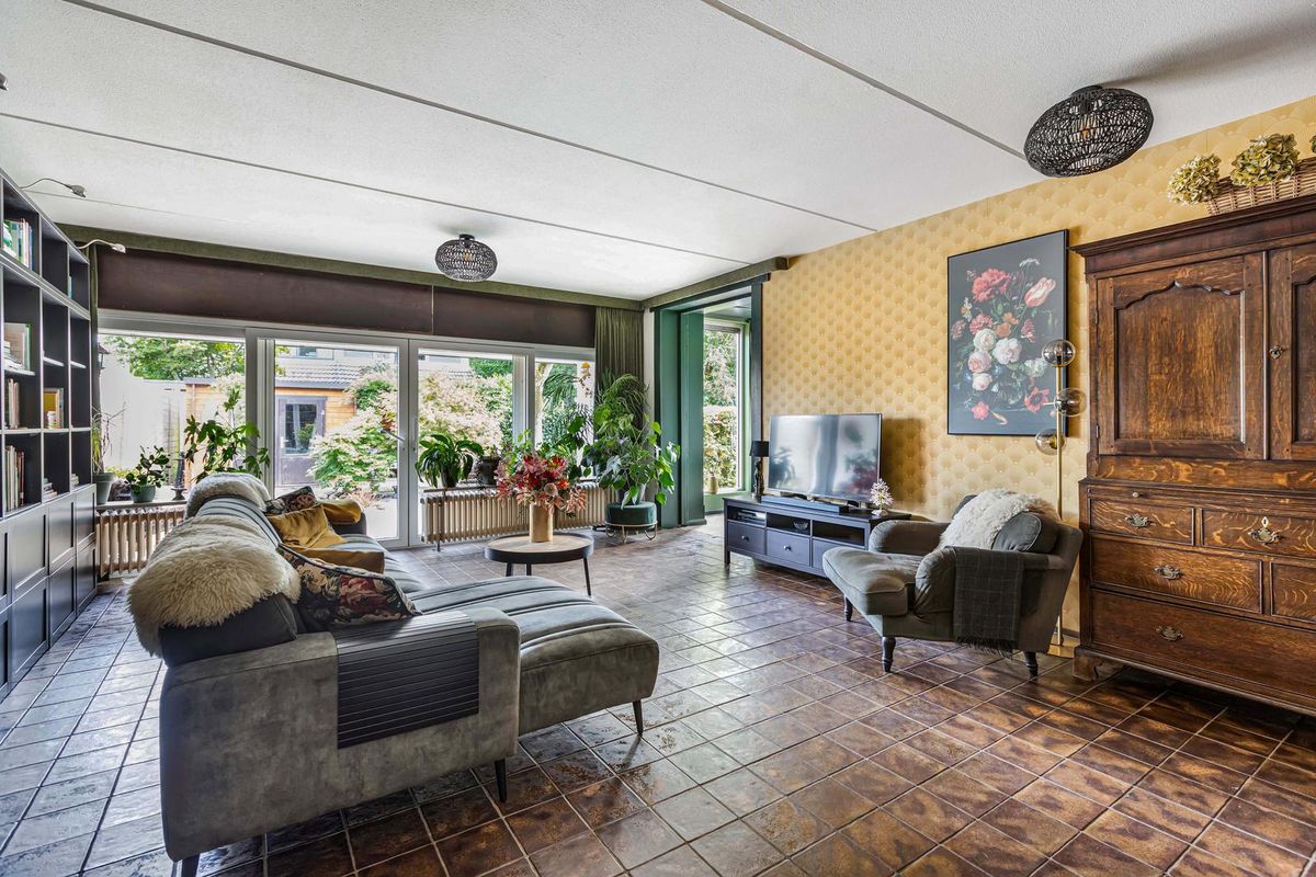 Via de voordeur komt u in de ruime hal met toilet en de berging/kast. Via deze ruimte bereikt u de woon-/eetkamer (ca. 35 m2) met een aangebouwde tuinkamer. De woonkamer heeft een mooi uitzicht op de besloten tuin door middel van een schuifpui. Er is een half open keuken (ca. 16 m2) met veel kastruimte met inbouwapparatuur (onder andere koel- en vrieskast, gasfornuis, oven en een vaatwasser.