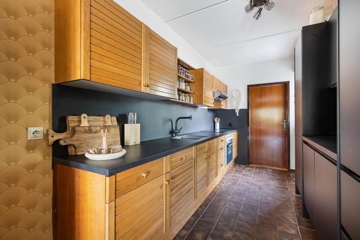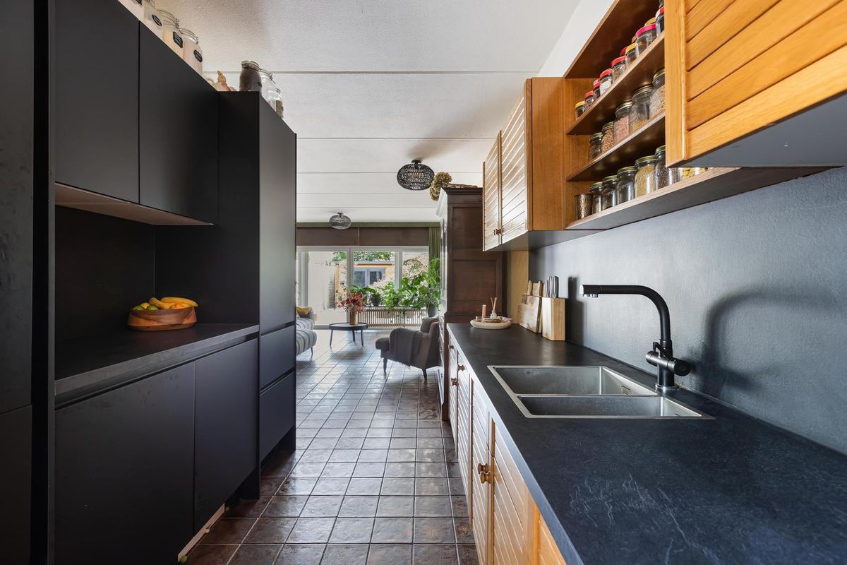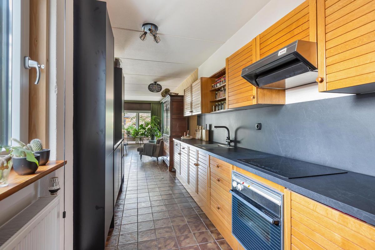 Via de deur in de keuken komt u in de ruime bijkeuken (ca. 8 m2) met de wasmachine-aansluiting. Vanuit de bijkeuken kunt u ook direct naar buiten middels de zijdeur.