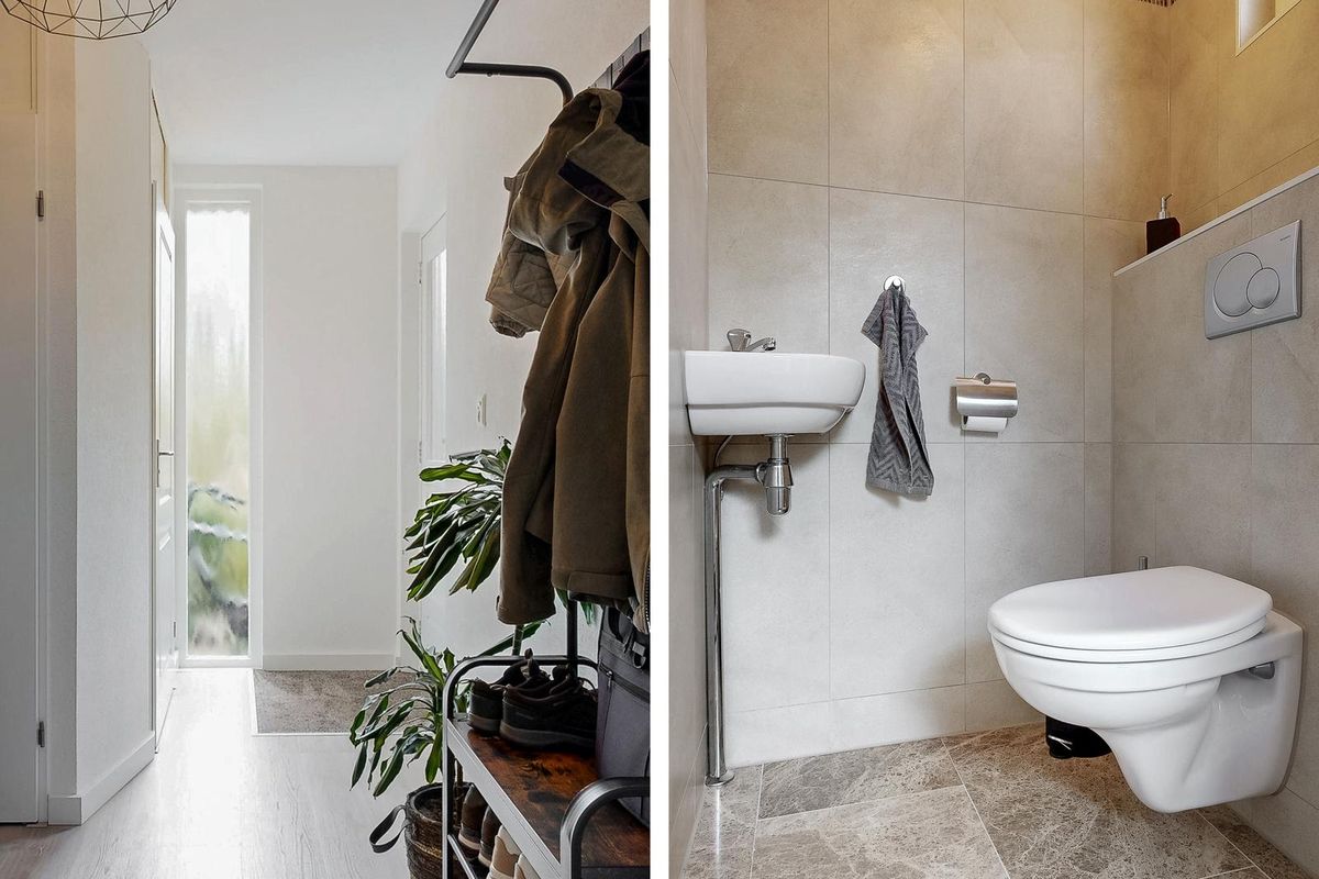 De overloop biedt toegang tot drie ruime slaapkamers, stuk voor stuk keurig afgewerkt en voorzien van grote ramen die voor veel licht zorgen. De badkamer is modern en volledig betegeld in neutrale tinten. Deze is voorzien van een douchecabine, dubbele wastafel met meubel, tweede toilet, elektrische vloerverwarming en een raam voor natuurlijke ventilatie.
