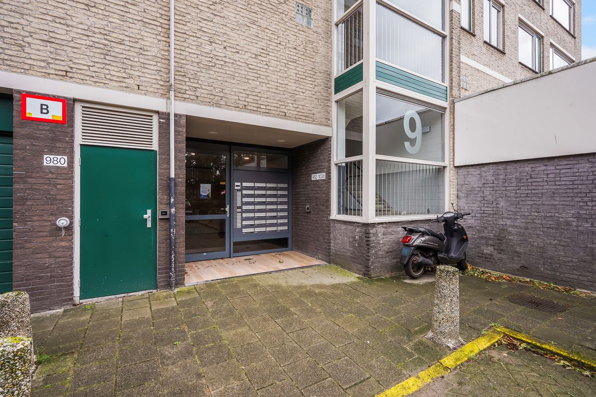 Gesloten portiek met belplateau, liften en trappenhuis