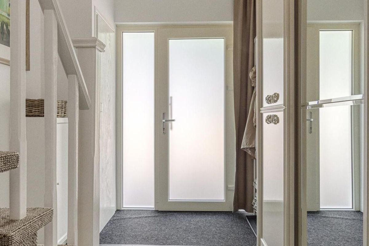 Ontvangst in de hal/entree met ruimte voor garderobe, meterkast, trapopgang, bergruimte onder