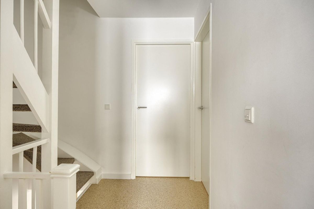 de trap en toiletruimte. Mooie brede woonkamer van ruim 34 m² met aan de voor- en achterzijde veel lichtinval door de grote raampartijen, lichte afwerking en open verbinding met