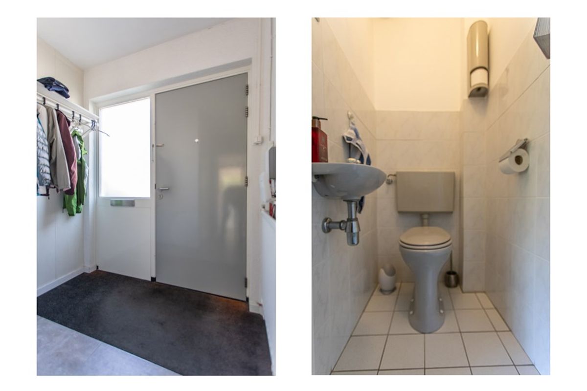We starten onze rondleiding in de nette entreehal, waar je direct merkt dat deze woning met zorg is bewoond. Hier vind je de toegang tot het toilet, de trap naar boven én de doorgang naar de woonkamer. Eenmaal in de woonkamer valt meteen het fijne licht op: dankzij de grote raampartijen aan zowel de voor- als achterzijde is deze ruimte heerlijk licht en ruim. De woonkamer is keurig afgewerkt en biedt meer dan genoeg ruimte voor een gezellige zithoek én een ruime eethoek. Via de woonkamer heeft u toegang tot de voorraadkast.