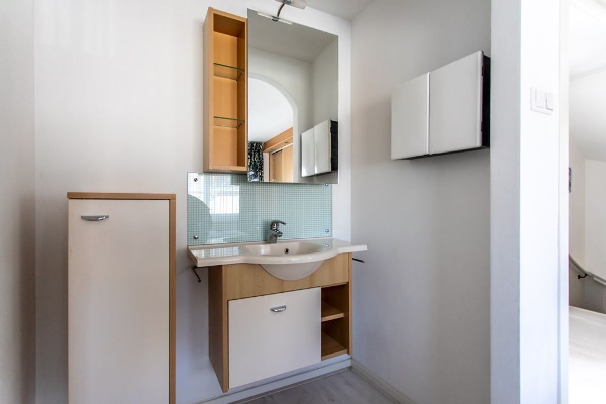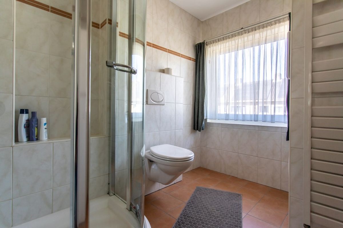 De badkamer is ook aan de voorzijde gelegen en compleet uitgerust met een douche, toilet, vloerverwarming én de aansluiting voor de wasmachine.