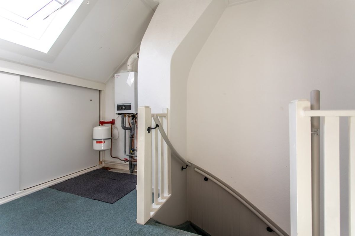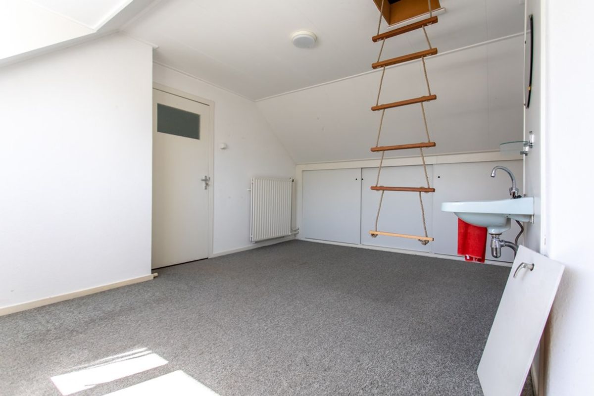 Via een vaste trap kom je op de verrassend ruime zolderverdieping. Hier tref je een vierde, volwaardige slaapkamer aan—perfect als logeerkamer, hobbykamer of werkplek. De overloop én de slaapkamer bieden extra bergruimte, ideaal voor seizoensspullen of extra voorraad. Voor extra opslagruimte tref je op deze verdieping ook de toegang naar de vliering aan.