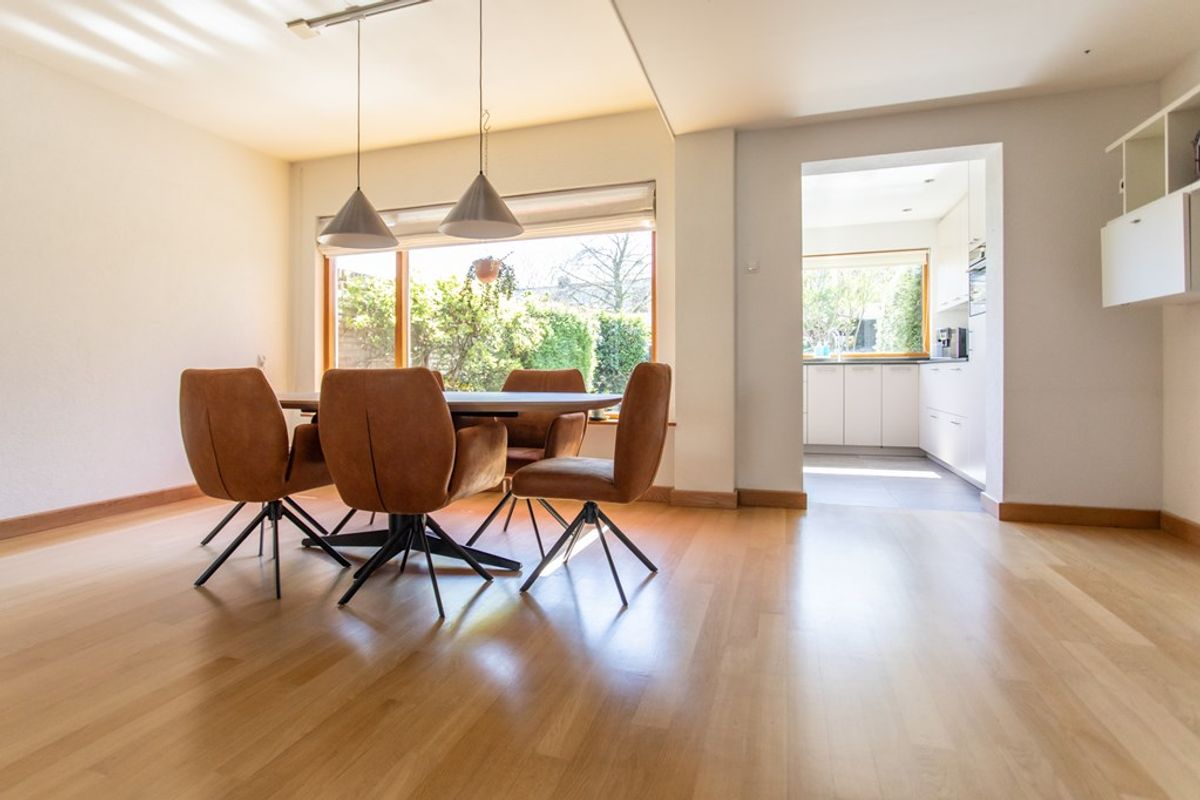 Towards the rear of the house you’ll find the semi-open kitchen from 2017, fully equipped with built-in appliances including a dishwasher (to be installed), a Quooker boiling-water tap, an induction hob, a combi-oven and a refrigerator. The kitchen also has underfloor heating. Stylishly finished and ideally positioned with views over the garden. Through the French door you can step straight into the sunny back garden.