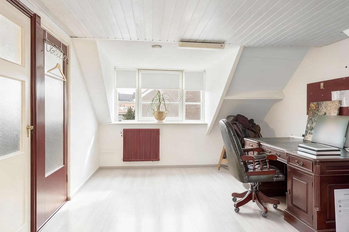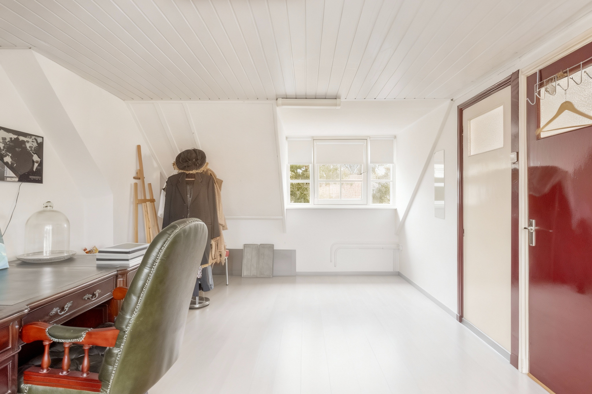 Op de eerste verdieping bevinden zich drie slaapkamers, waarvan de hoofdslaapkamer voorzien is van airconditioning. De badkamer beschikt over een ligbad en er is een apart tweede toilet aanwezig. De ruime zolderverdieping heeft dakkapellen aan de voor- en achterzijde, waardoor er veel licht binnenvalt. Hier is nu een vierde slaapkamer aanwezig, met de mogelijkheid om eenvoudig een vijfde te creëren.