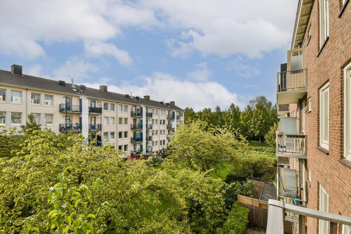 Charmant en licht appartement van circa 43 m² met twee zonnige balkons en een ruime privéberging, gelegen in een goed onderhouden complex uit 1953 in Amsterdam-West, met eeuwigdurend afgekocht erfpacht.