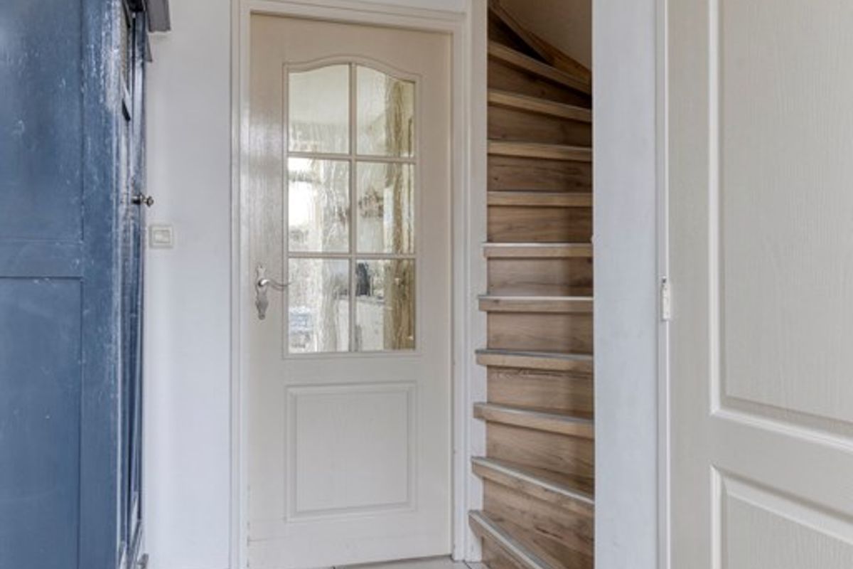 Bij binnenkomst in de hal vindt u de meterkast, het toilet met fonteintje en raam, en de trap naar de eerste verdieping. Vanuit hier loopt u door naar de keuken. De keuken is in de lengte opgesteld, deels open en voorzien van diverse inbouwapparatuur, waaronder een oven, 4-pits gaskookplaat en afzuigkap. Een praktische provisiekast biedt extra bergruimte. Vanuit de keuken stapt u direct de achtertuin in, waardoor koken en buiten leven prettig met elkaar verbonden worden. De doorzonwoonkamer is een lichte en ruime leefruimte, met grote ramen aan zowel de voor- als achterzijde die zorgen voor een overvloed aan daglicht. De gestucte wanden en plafonds in combinatie met de houten vloer geven de kamer een warme, sfeervolle uitstraling waar u zich direct thuis voelt.