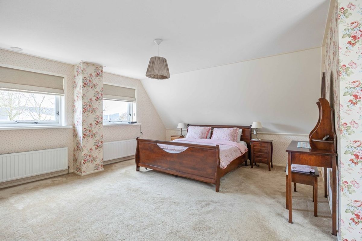 Op de eerste verdieping vindt u een ruime overloop, een royale ouderslaapkamer met toegang tot een inpandig balkon boven de serre, en drie extra slaapkamers. Twee kamers zijn voorzien van dakkapellen. Daarnaast is er een tweede toilet met wastafel en een praktische vaste kast. Via een vlizotrap bereikt u de bergzolder.