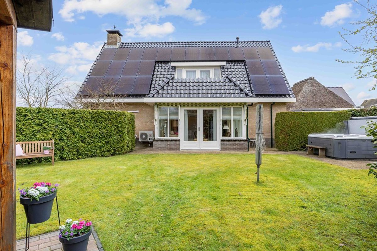 De tuin biedt volop privacy en is fraai aangelegd met een groene haag, gazon en borders met beplanting. Er zijn meerdere terrassen, waaronder een terras met overkapping van Douglas hout en een tweede terras met jacuzzi – een heerlijke plek om te ontspannen.