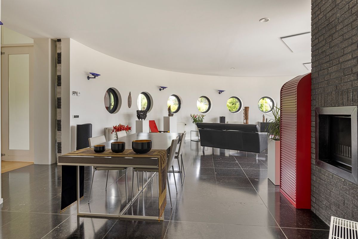 Het hart van de woning bevindt zich in de ronde structuur die de woonkamer en de keuken herbergt.