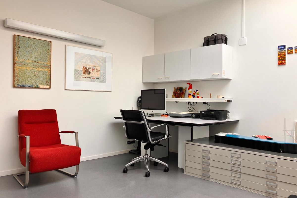 Vervolgens komen we in een multifunctionele ruimte met een verrassende ruimtelijkheid. Deze ruimte kan prima fungeren als slaapkamer, werkkamer of praktijkruimte. Een prima optie voor wie wil werken aan huis. De lichtstraat met screens zorgt ook hier voor aangenaam veel lichtinval.